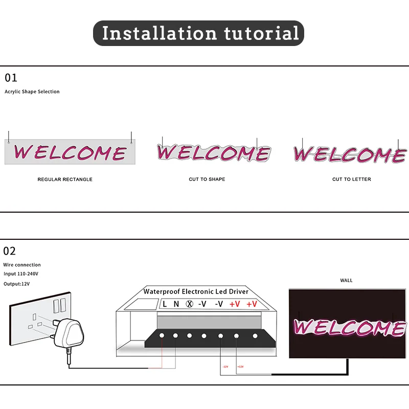 1. Акрил: обладает хорошей прочностью, светильник весом, долговечностью, не легко повредить, прозрачные материалы делают неоновый светильник s более красивым