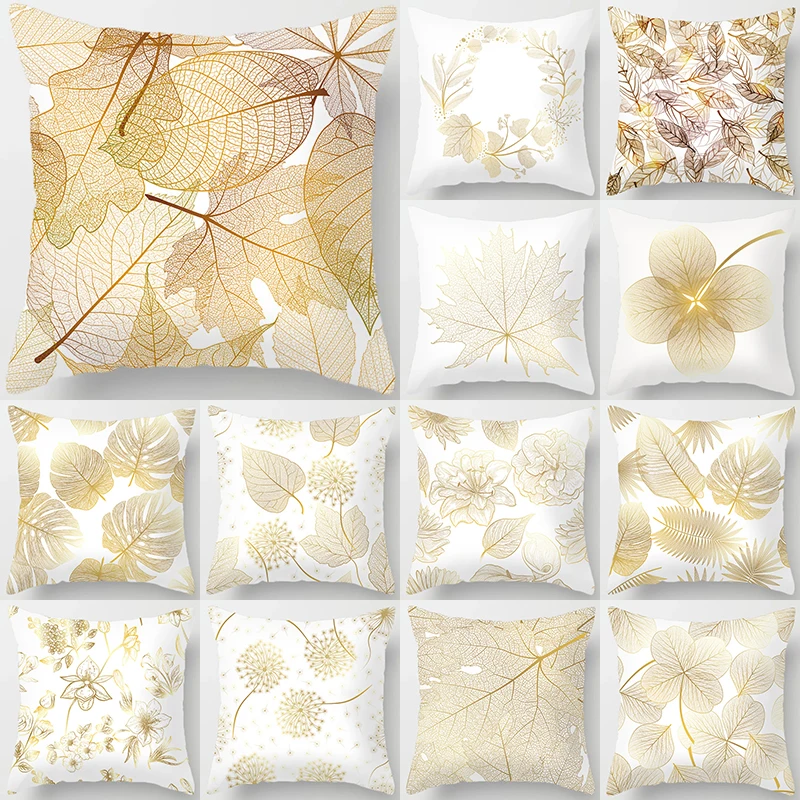 1 шт. 45*45 см чехол для подушки с золотым Рисунком Листьев, мягкая фотография для спальни, автомобиля
