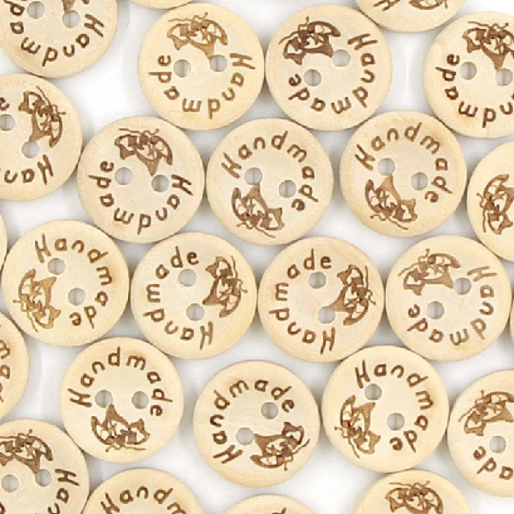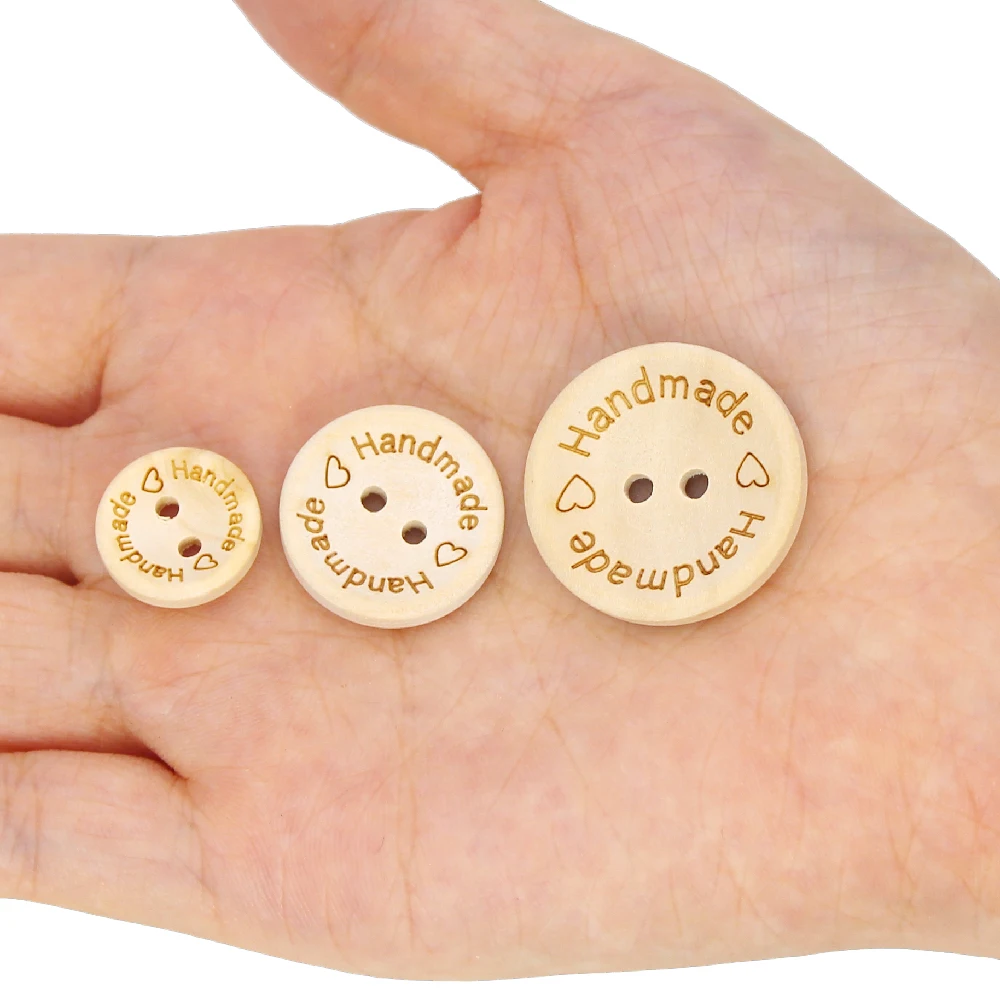 Круглые пуговицы ручной работы, деревянные пуговицы для рукоделия, бирки натурального цвета для шитья, декоративные пуговицы с 2 отверстиями для одежды, 50 шт.