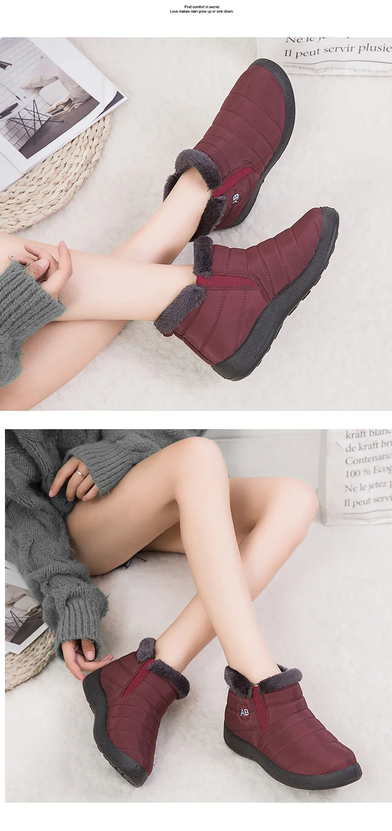 Женские ботинки, водонепроницаемые зимние ботинки, женские короткие плюшевые зимние ботинки, Теплые ботильоны для девочек, зимняя обувь для мамы, большие размеры 43