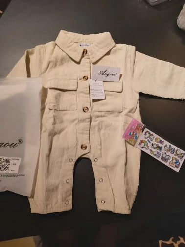 사진과 동일한데.. 아기가 입기에 원단이 너무 거치네요. 안 입히고 방치중이에요. 주문하실 분들은 사이즈 크게 주문하세요. 신축성 없는 원단이라 정사이즈로 주문하니 기저귀 부분은 잠기지도 않네요