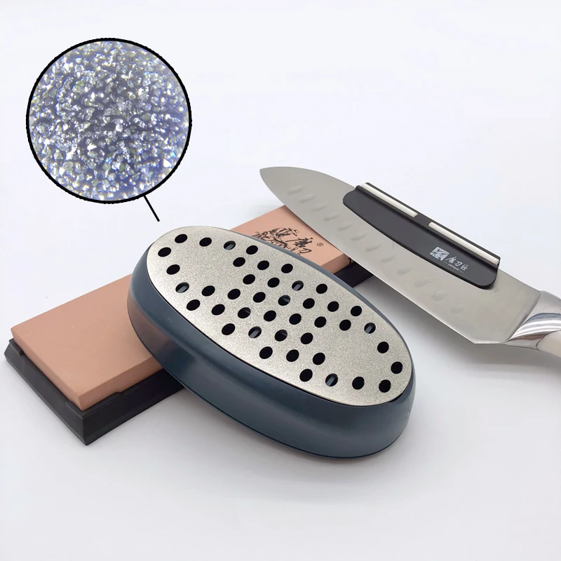 1. Замочите камень в теплой воде в течение нескольких минут. Как только пузырьки воздуха перестают расти, КАМЕНЬ готов к использованию. Пожалуйста, продолжайте применять воду также во время заточки.
