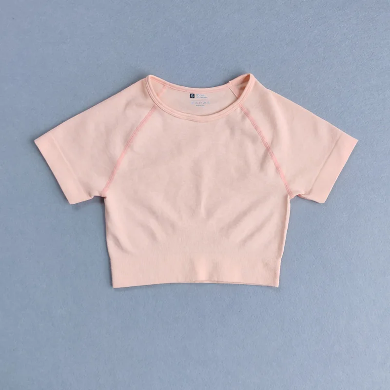 Женский бесшовный костюм для йоги, спортивный бюстгальтер с коротким рукавом, укороченный топ с высокой талией