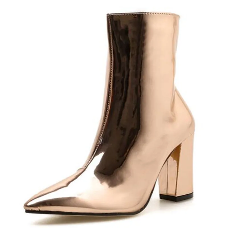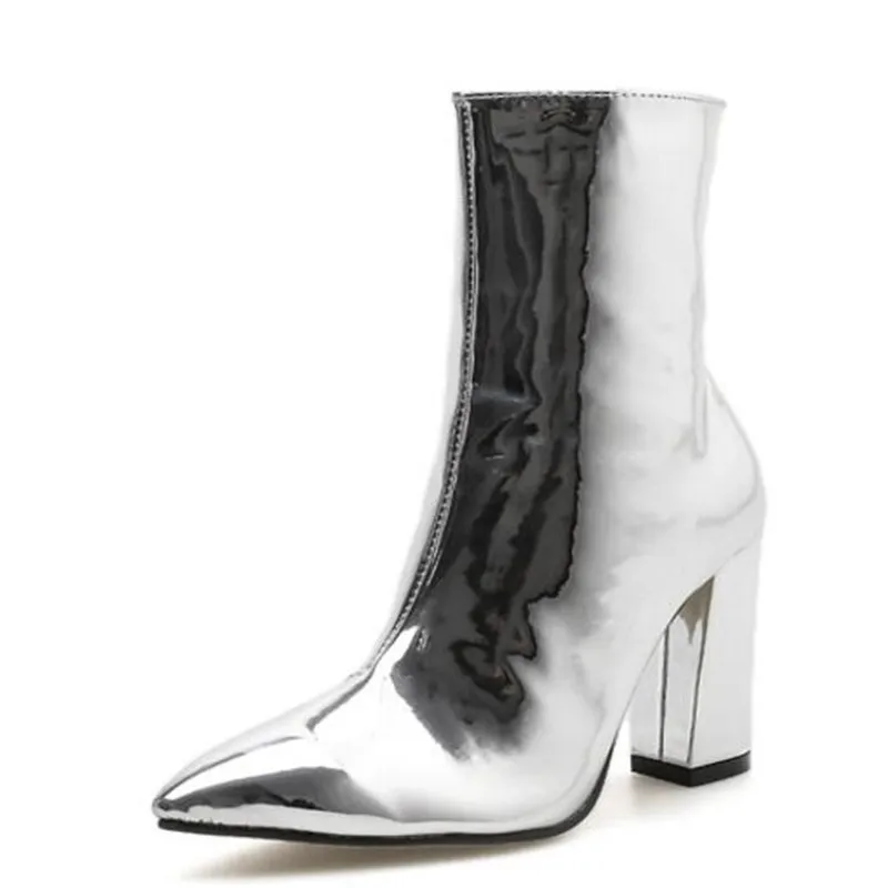 Модные женские ботильоны из лакированной кожи золотого и серебряног...