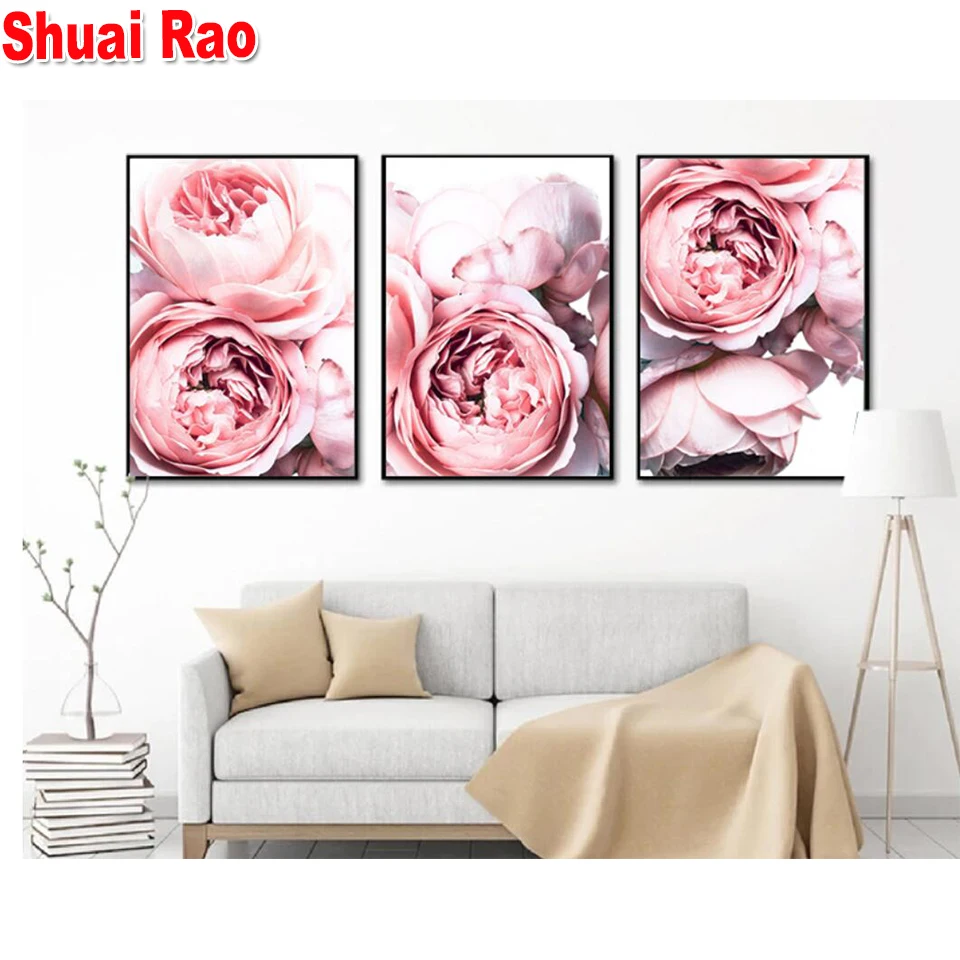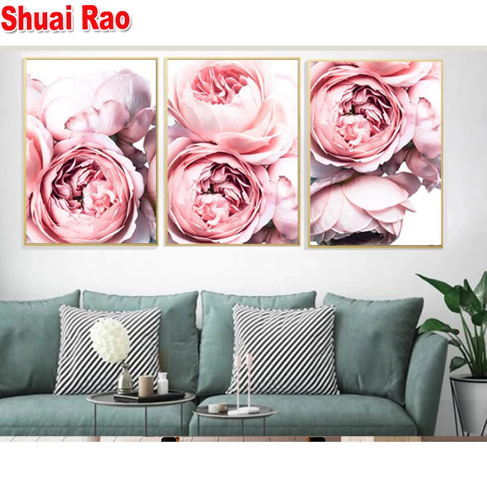 Набор для алмазной вышивки с изображением розовых цветов лилии пион...