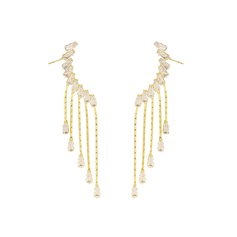 Новый дизайн ювелирных изделий в южнокорейском стиле Фея Сияющие Роскошные полностью циркониевые клипсы для ушей цепочка с кисточкой женские темпераментные серьги