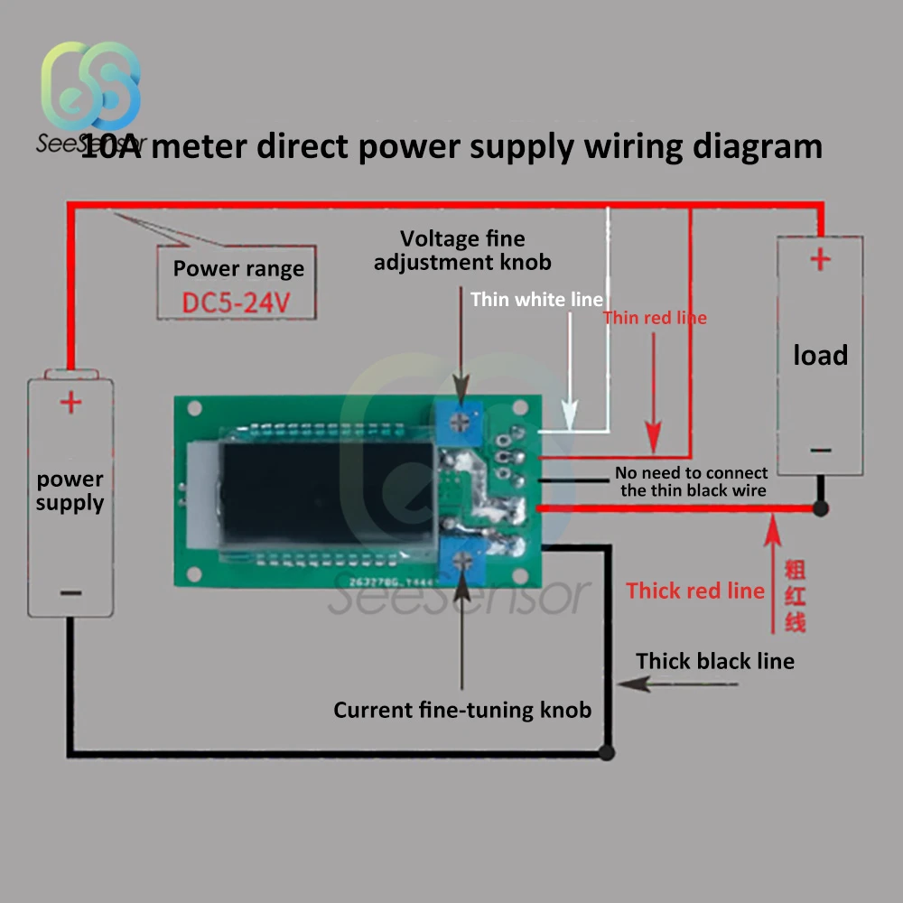 Цифровой вольтметр, амперметр, измеритель напряжения и силы тока постоянного тока 100 в 10 А с ЖК дисплеем, 5-24 В постоянного тока