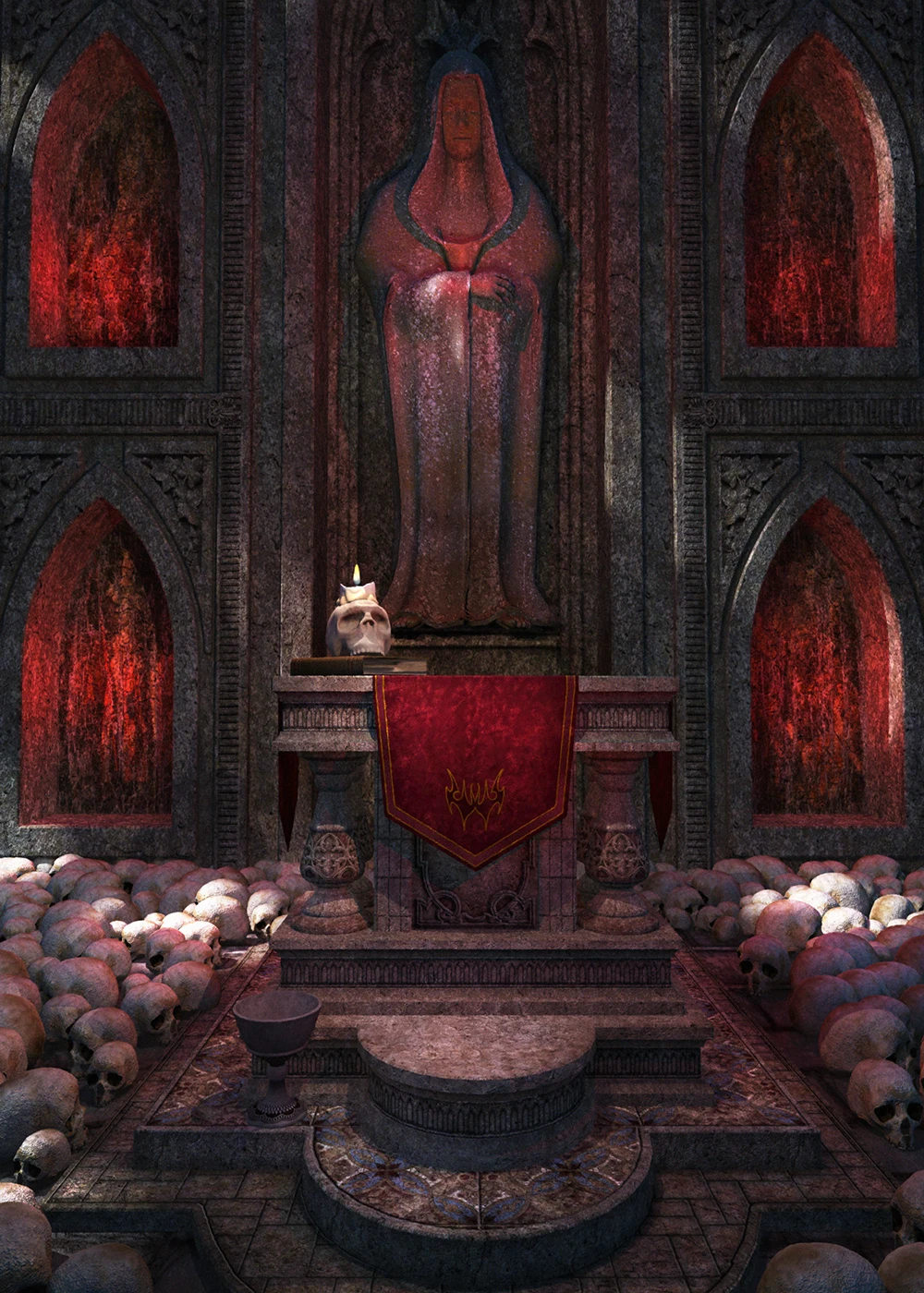 Фон для фотосъемки Хэллоуин готический алтарь ужас, черепа Ретро св...