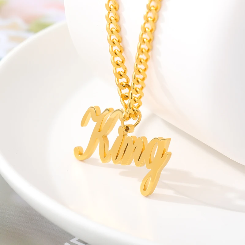 Name314L Stainless Steel Gold Personalized Custom Name Pendant Necklace Cu