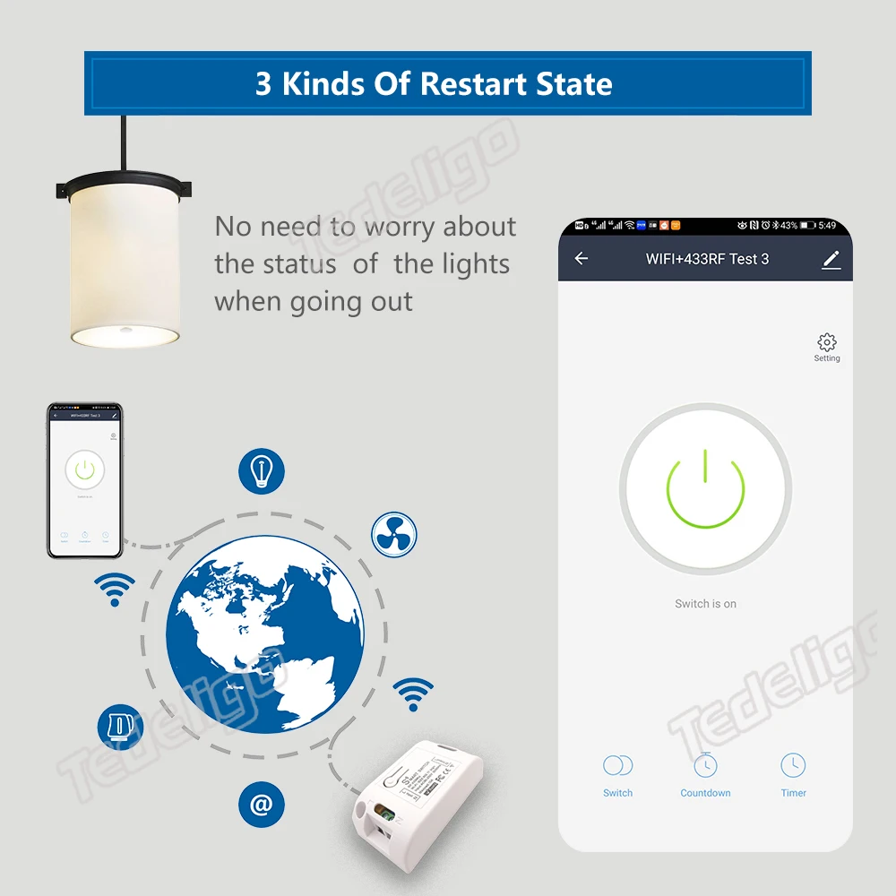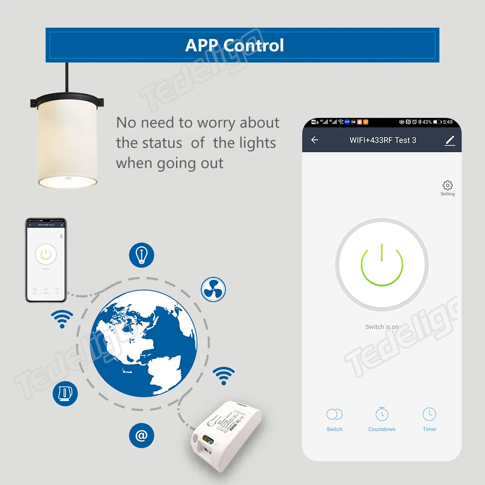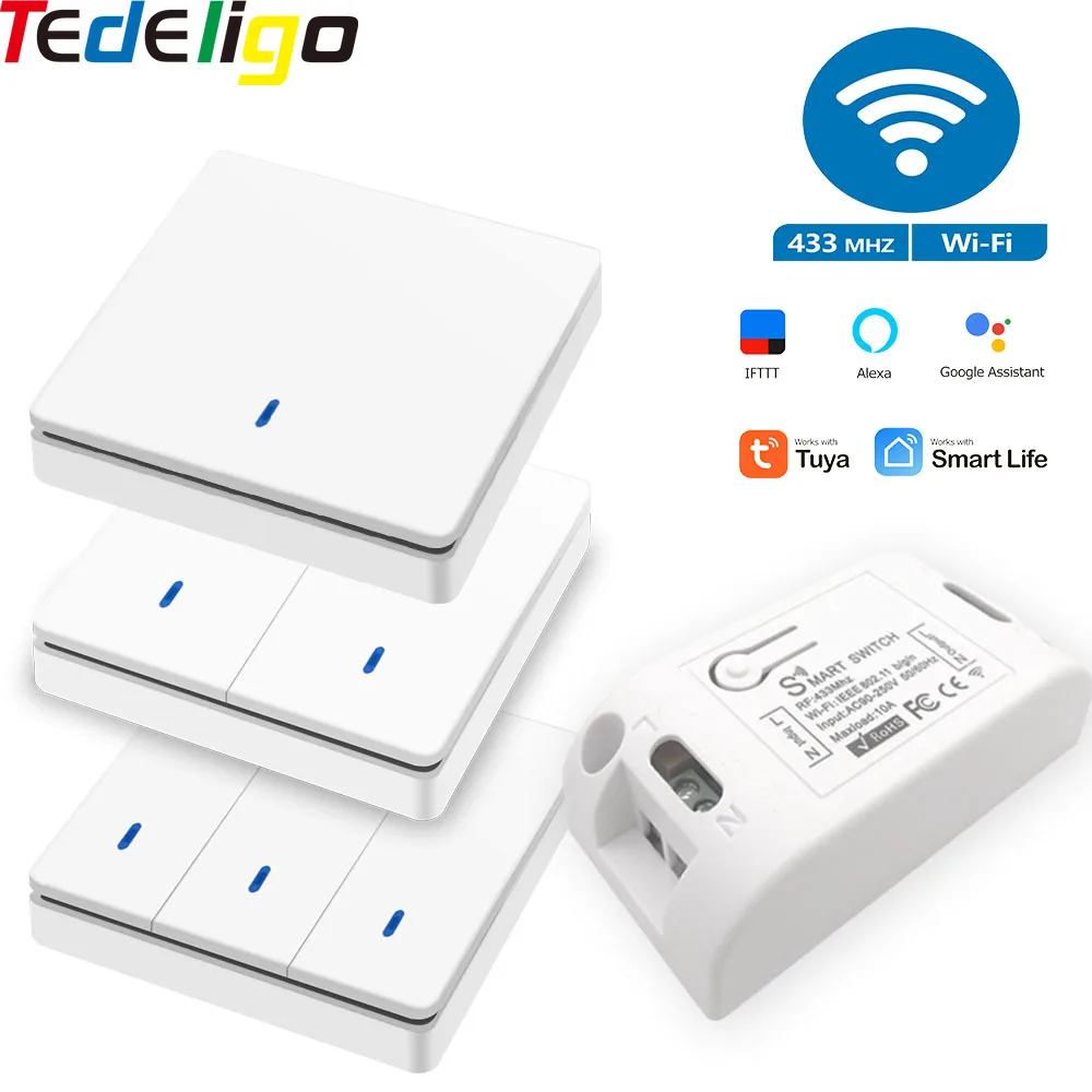 Беспроводной смарт светильник ключатель Tuya Smart life с поддержкой приложения, Wi-Fi, 433 МГц, релейный модуль таймера сделай сам, Google Home Alexa