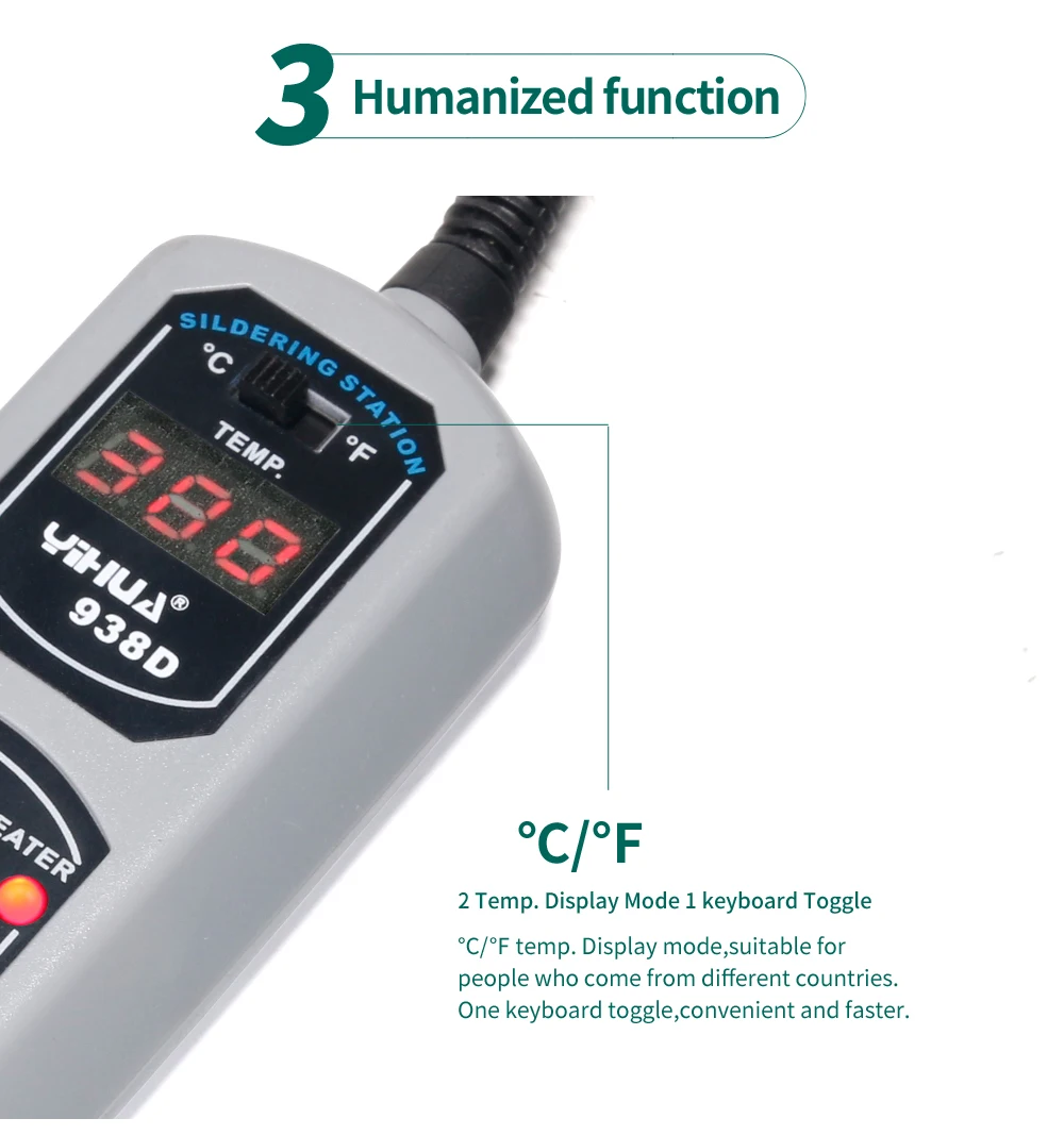 4Функция фиксированной Подвески на 10 минут, до 10 минут без использования утюга, автоматически переходит в режим подвески, питание и продлевает срок службы.5. Параллельная конструкция электрического пинцета, очень удобная для небольшие электронные компоненты, сколов, удаления стружки и установки сварных компонентов. Когда вам нужно снять параллельные электрические зажимы, его можно использовать непосредственно в местах сварки через компоненты сопротивления для нагрева.