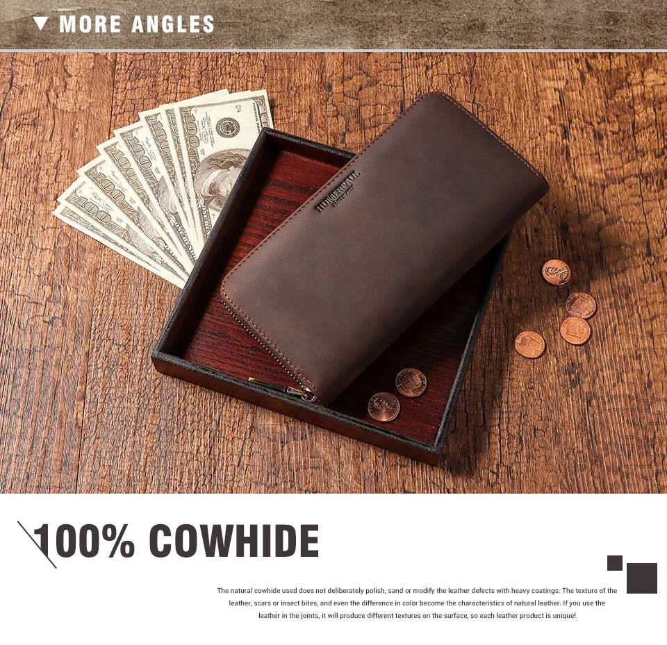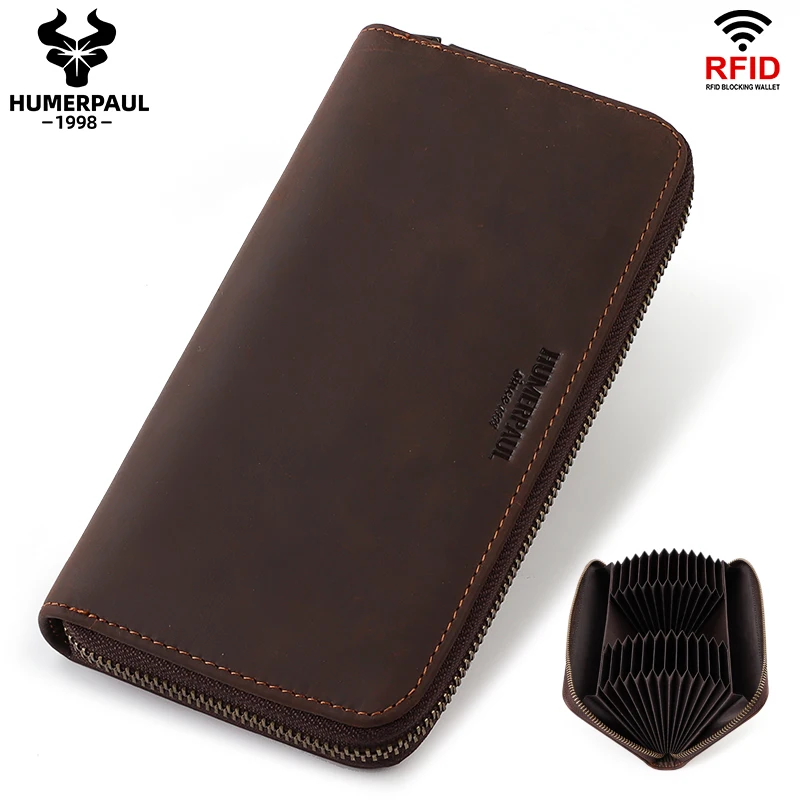 HUMEPAUL 100% кредитница из натуральной кожи с функцией блокировки RFID бумажник на молнии, карман для монет, Длинный кошелек для паспорта Обложка для Для мужчин держатель для карт, кошелек