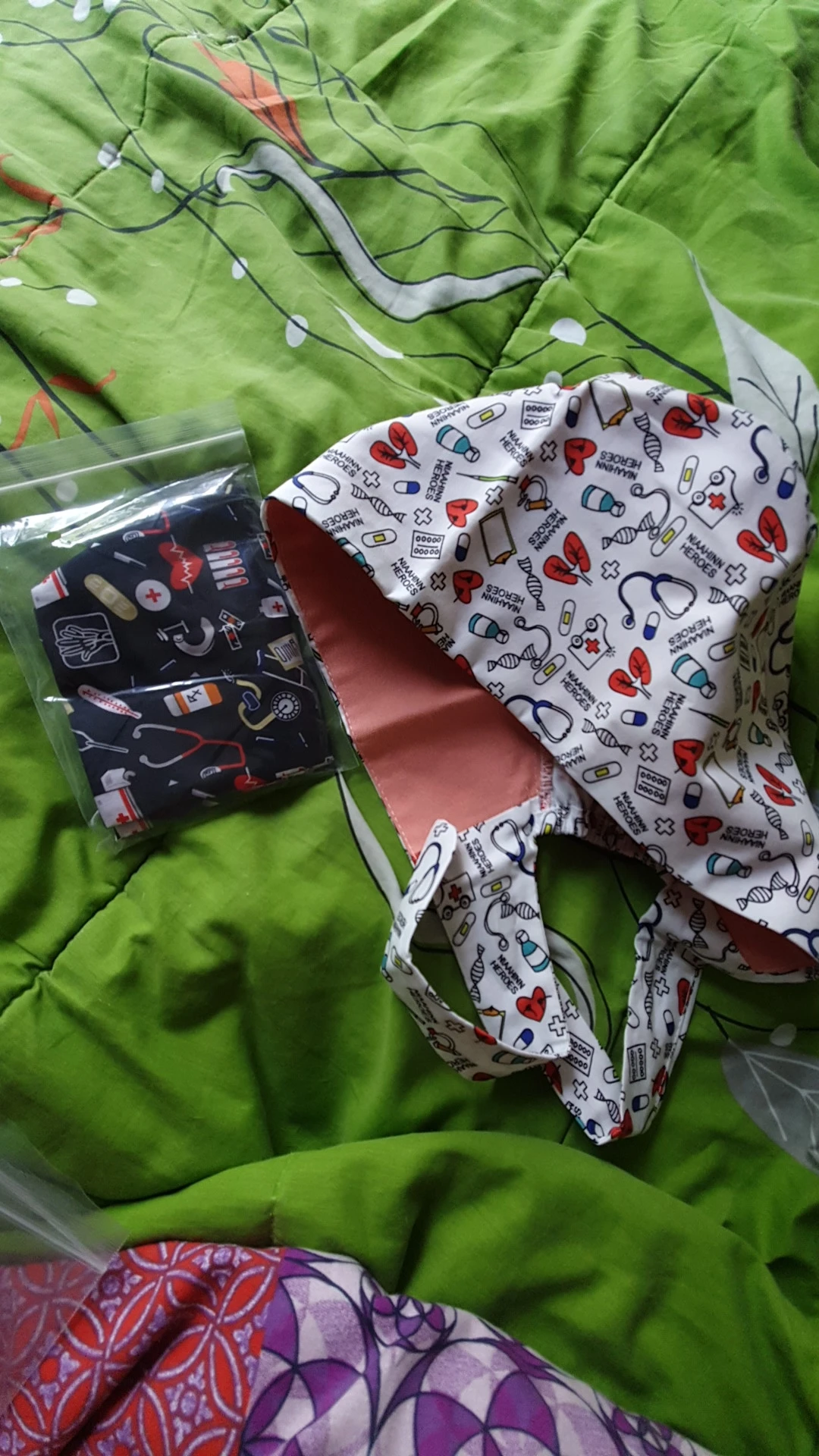 Доставка в Москву 2 недели, классная сатиновая хирургическая шапочка, приятная к коже, раздражения кожи не вызывает. Внутри в области лба есть впитывающая полоска. Качество и яркость принта на высоком уровне. Рекомендую!