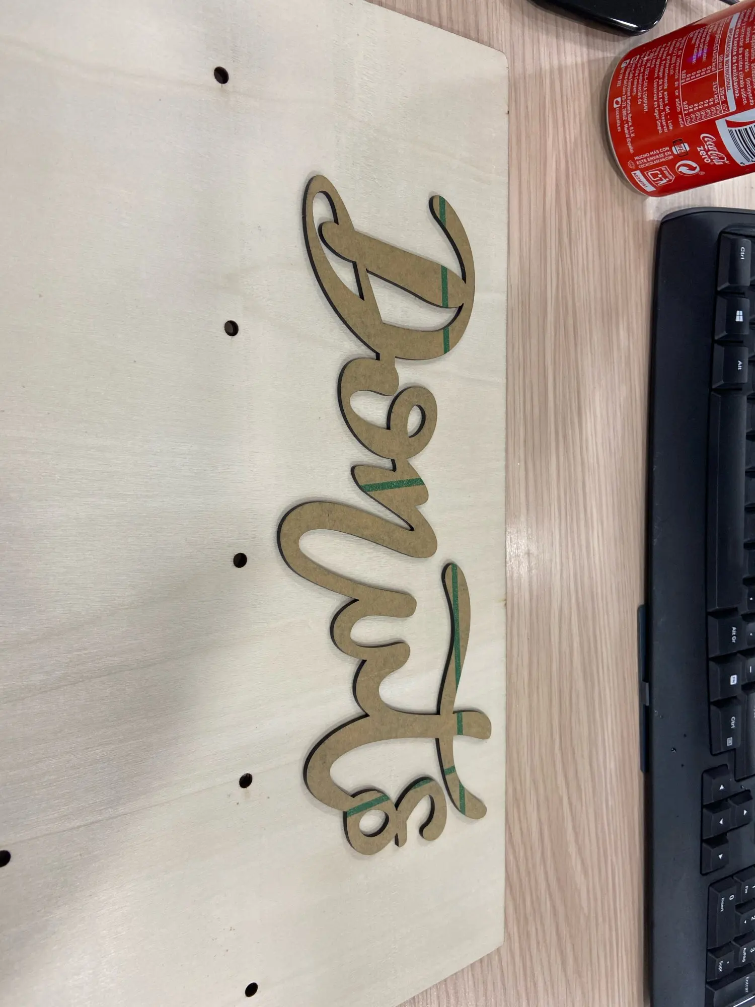 Le donuts n’est pas noir mais bois avec des traces indélébiles vert