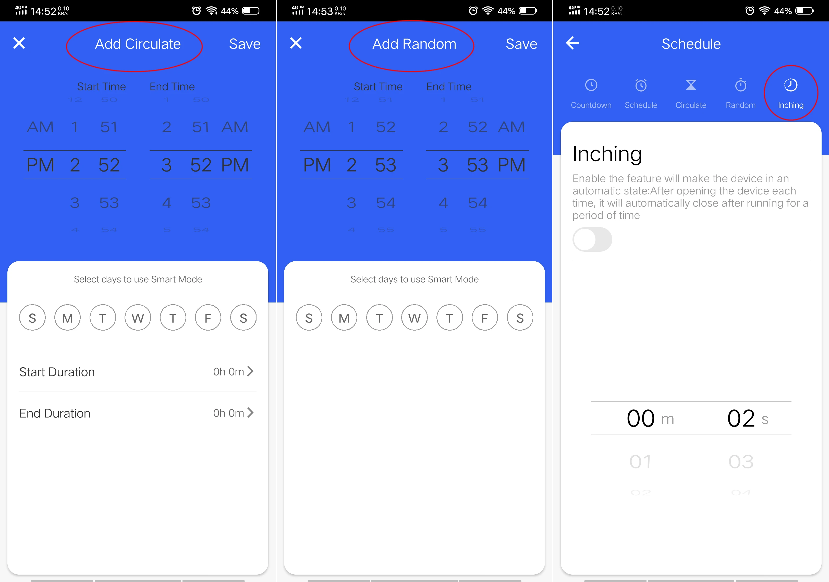 Отлично работает, может устанавливать таймеры, «randoms», «циркулирует» и т. Д., но «inching» опция (установка максимального рабочего времени) обеспечивает максимум 60 минут.
