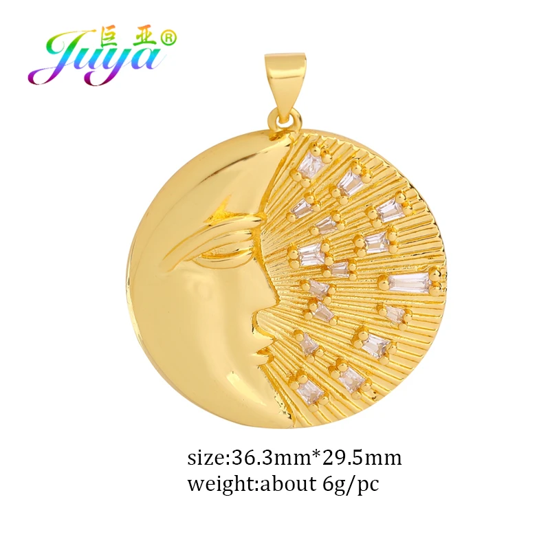Juya DIY ручной работы Проложить Cz Роскошный Золотой цвет декоративный большой размер Подвески в виде Луны, звезды для женщин мужчин Панк вера кулон изготовление ювелирных изделий