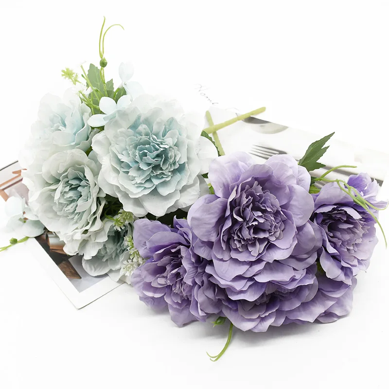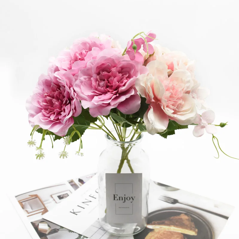 Искусственные цветы, 1 Букет пионов, аксессуары для домашнего декора, свадебные вазы для обеденного стола, предметы интерьера, реквизит для фотографий