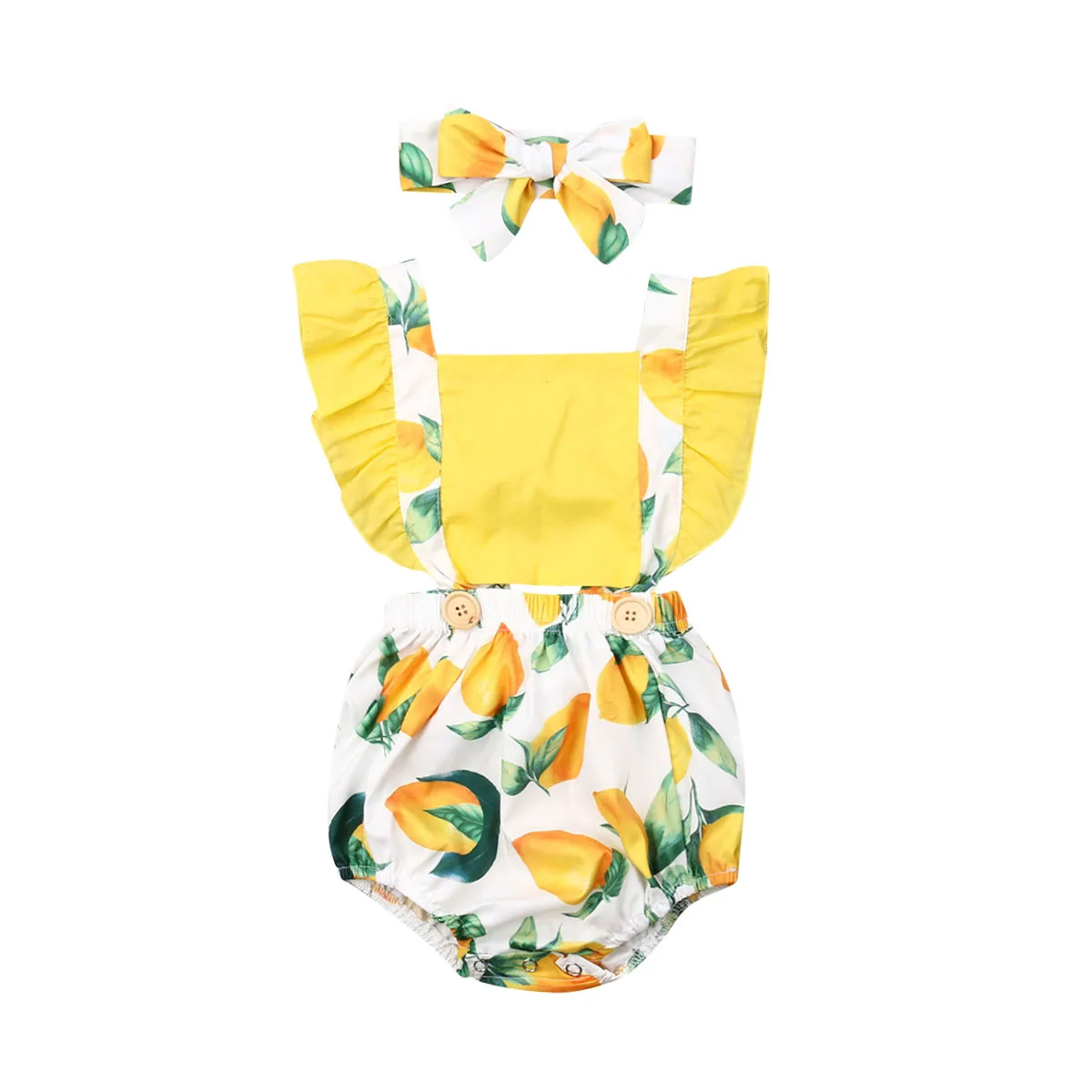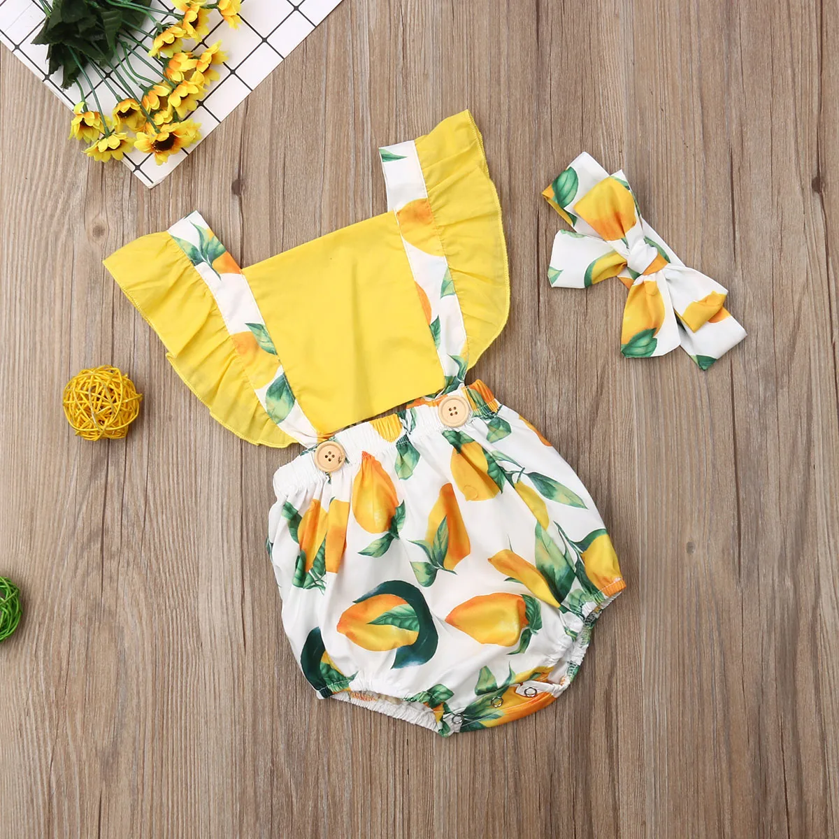 Боди без рукавов с лимоннымарбузом для новорожденных девочек, комби...