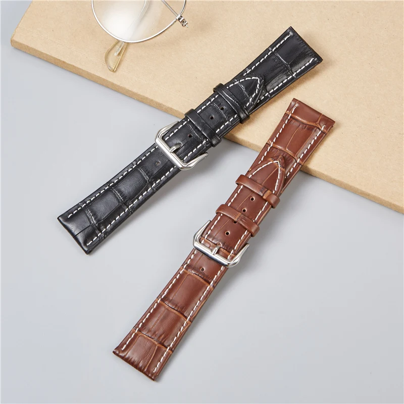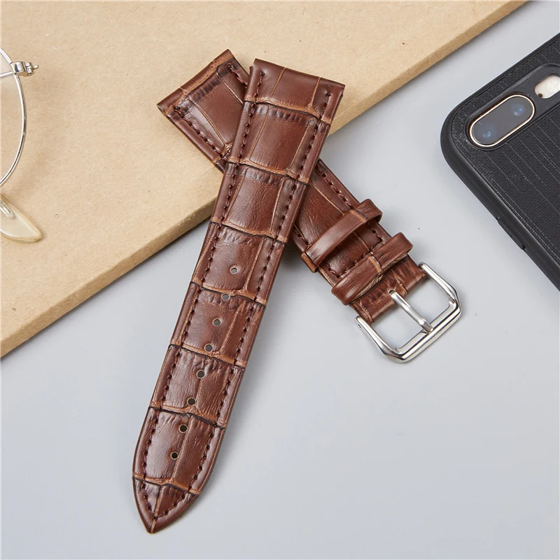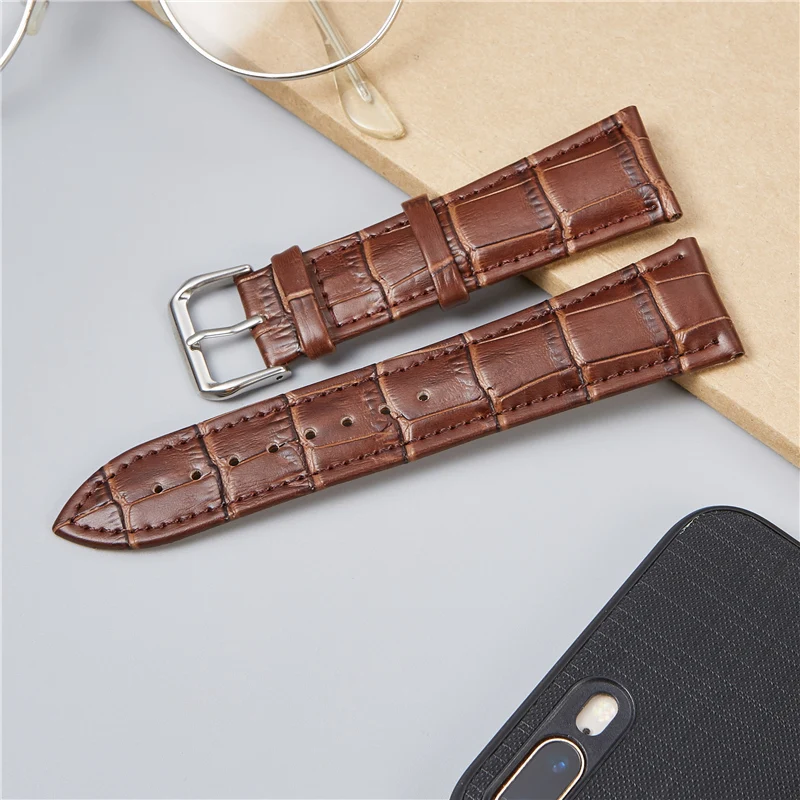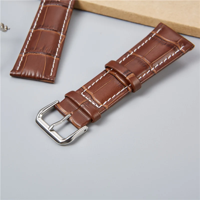 Ремешок из натуральной телячьей кожи для мужских часов, повседневный удобный браслет из тисненой кожи, 16 18 20 22 24 мм