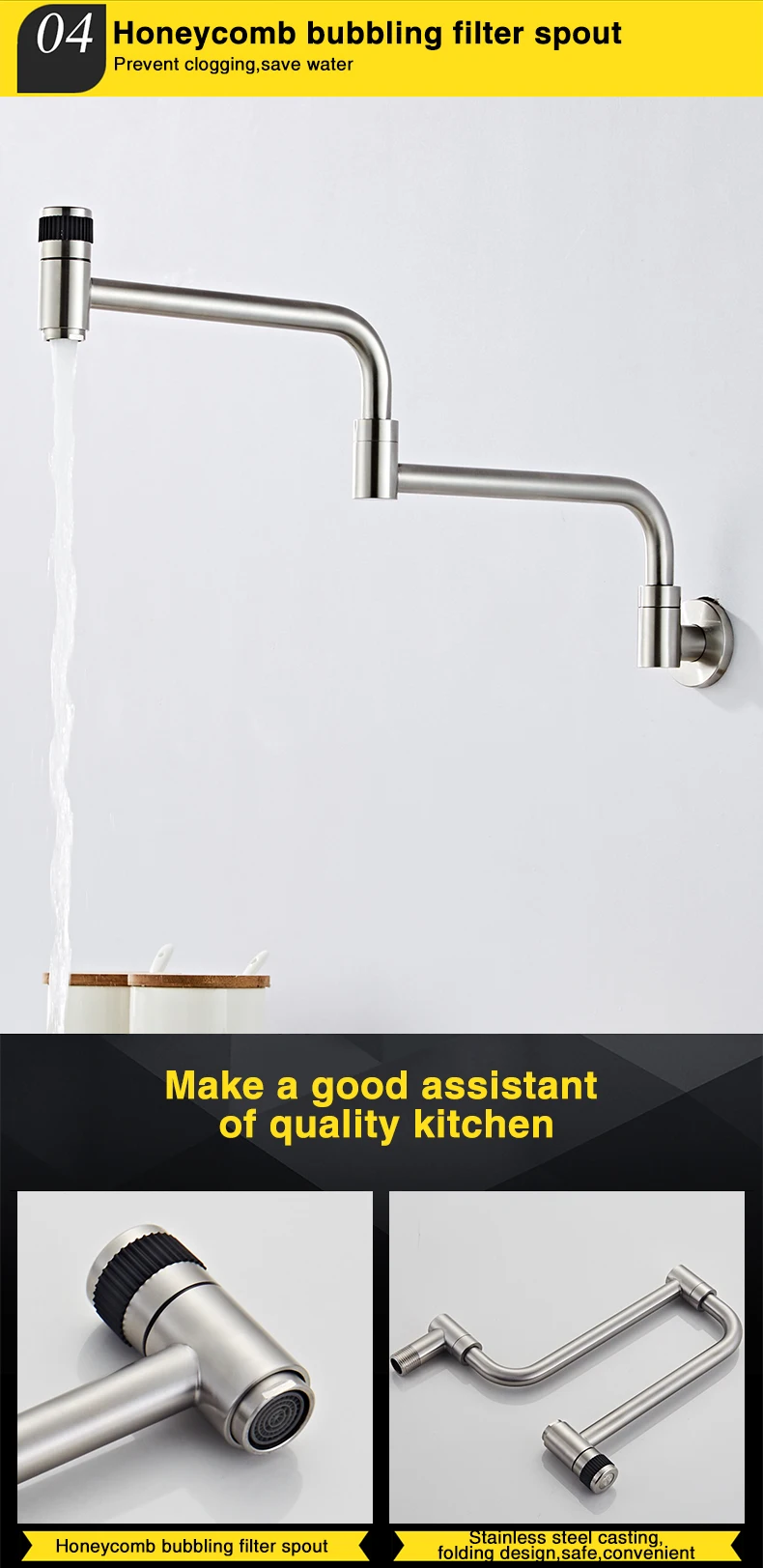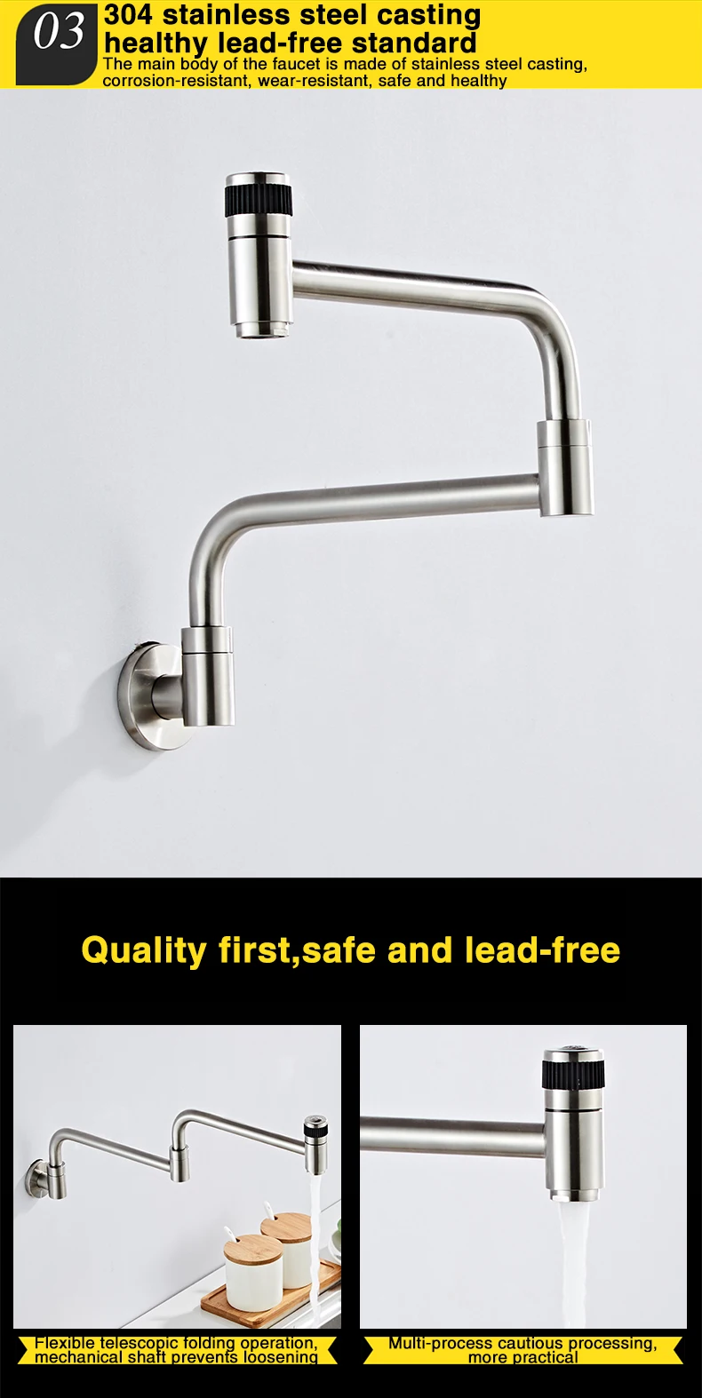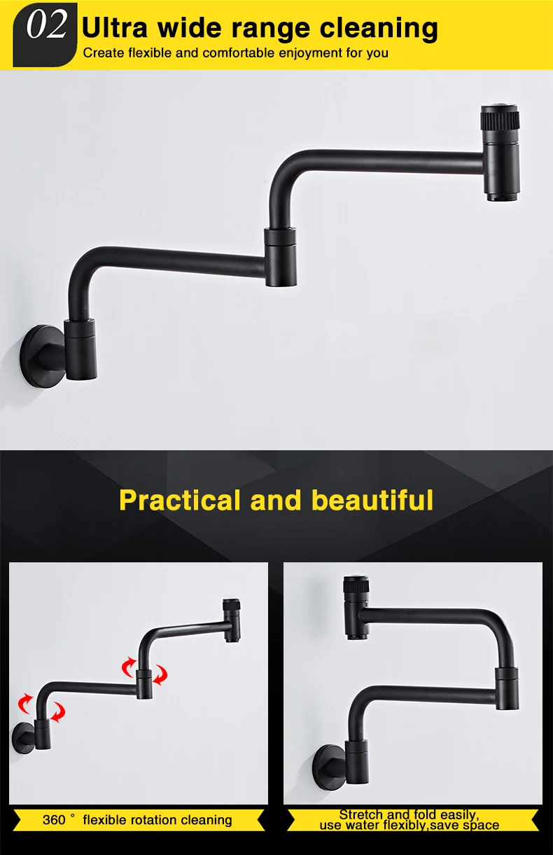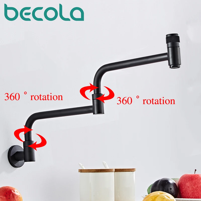 Кухонный Смеситель BECOLA из нержавеющей стали, складной кран, одна ручка, хромированныйчерный, 360 градусов