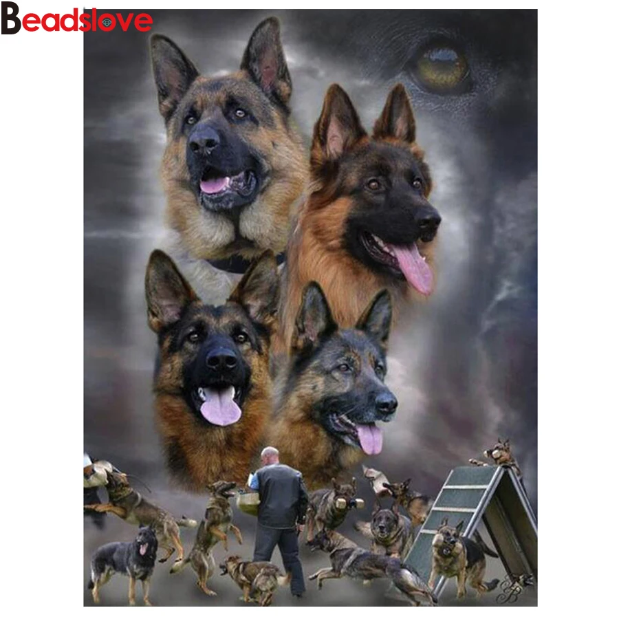 Алмазная 5D картина сделай сам, немецкая овчарка, Алмазная мозаика, квадратные Стразы, алмазная вышивка, Круглые бриллианты