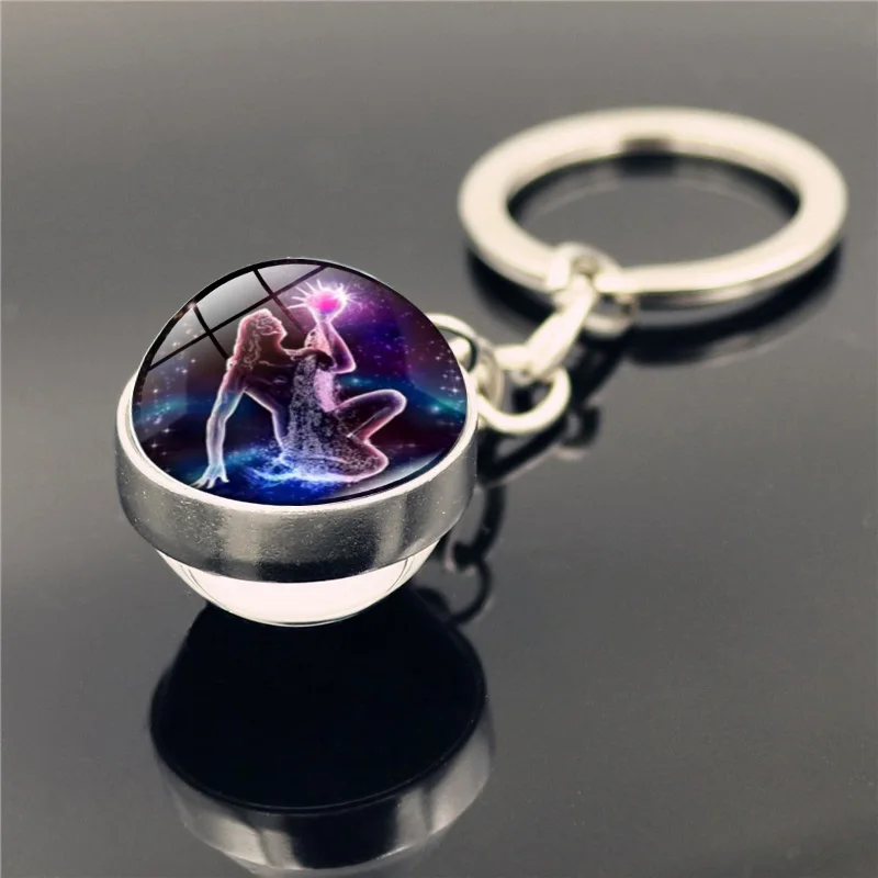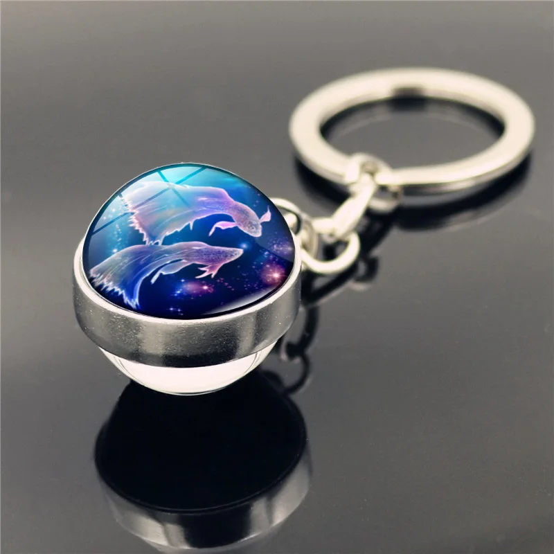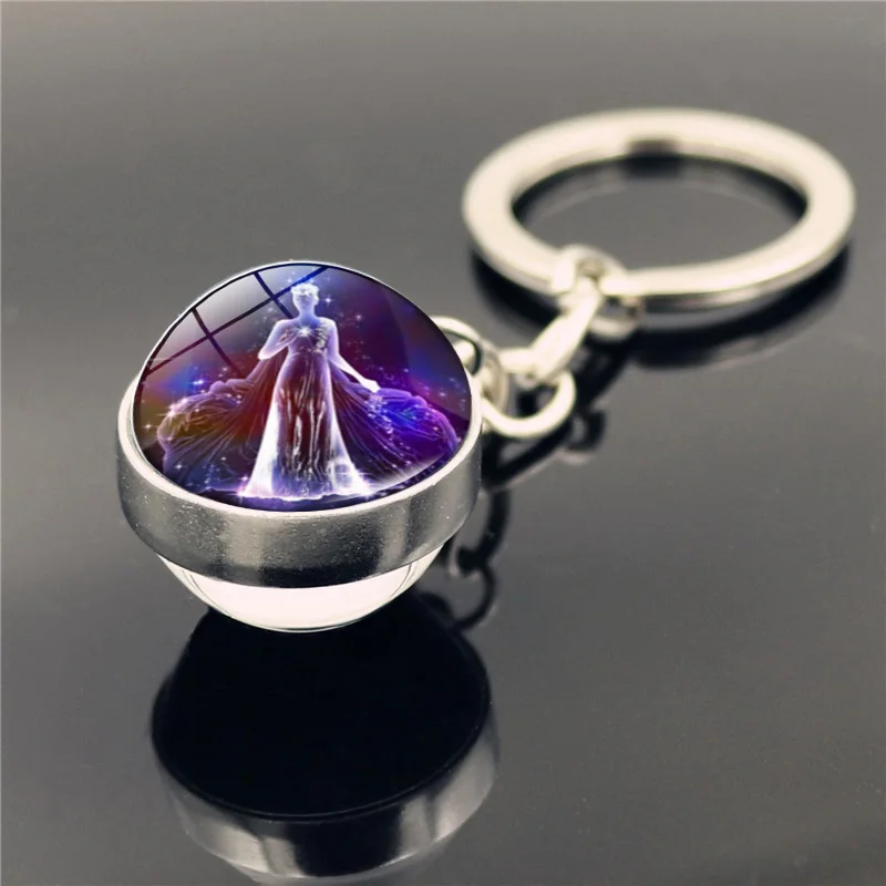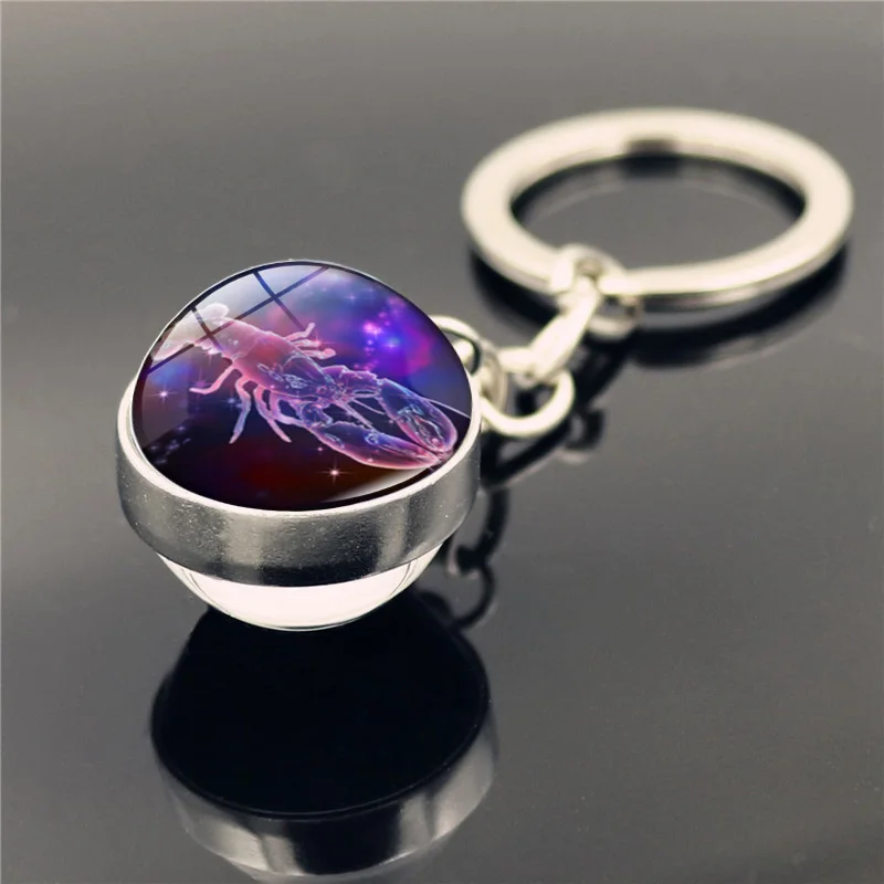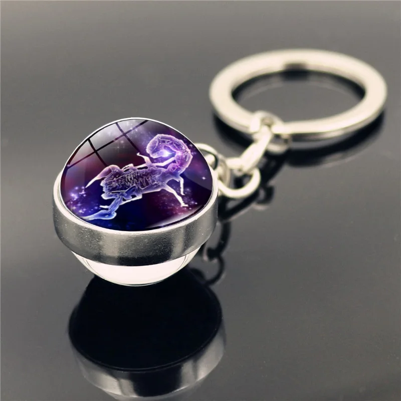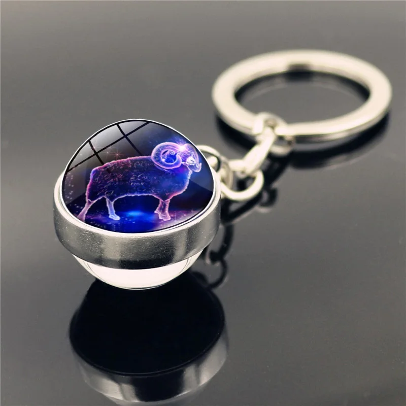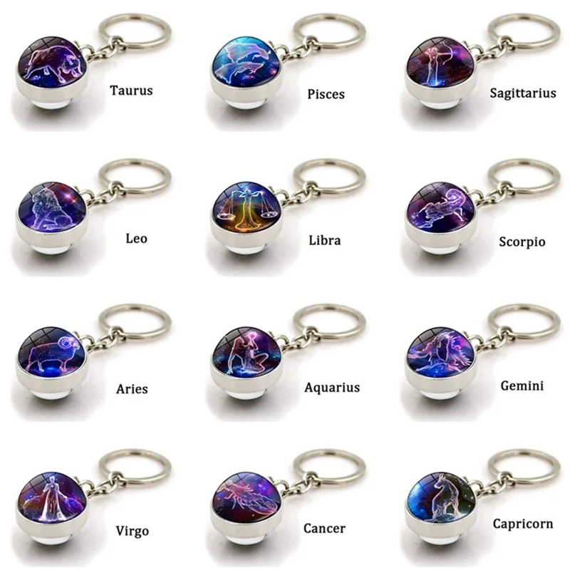 Брелок для ключей со стеклянным шаром, со знаком зодиака, 12, брело...