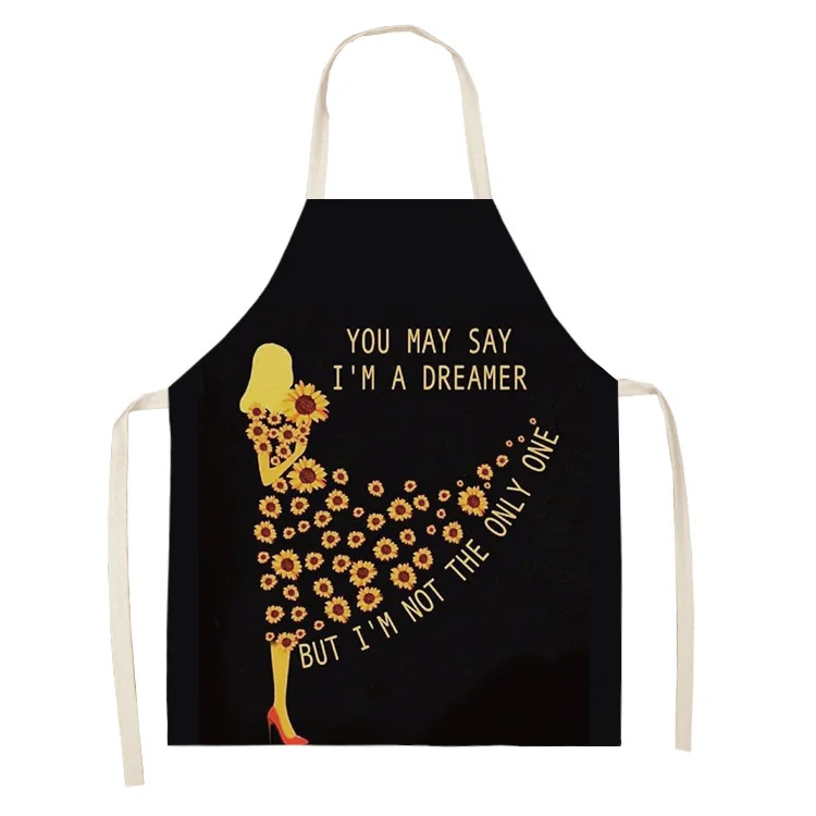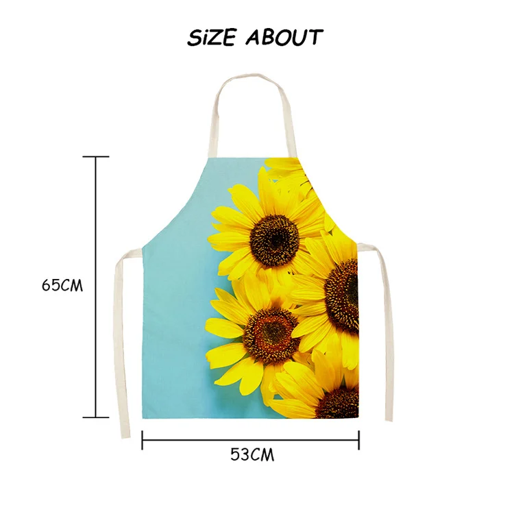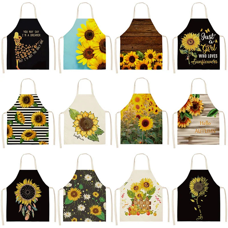Хлопковые льняные Кухонные фартуки с рисунком подсолнуха желтого и черного цвета, 53 х65 см, для женщин, для взрослых, для дома, кулинарии, уборки, выпечки, нагрудники 46287