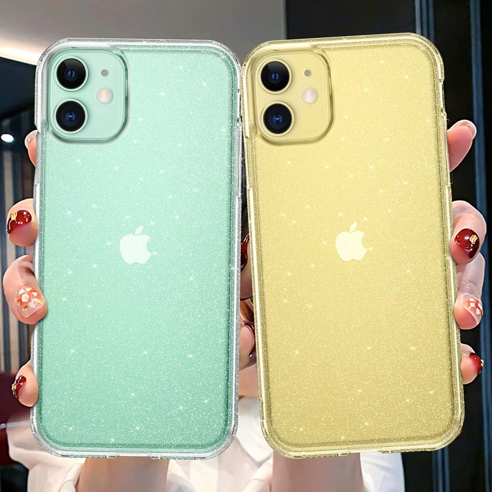 Прозрачный блестящий чехол для iPhone 13 11 Pro Max 12 Mini XS X XR 7 8 Plus SE 2020, блестящий прозрачный чехол, аксессуары для телефона