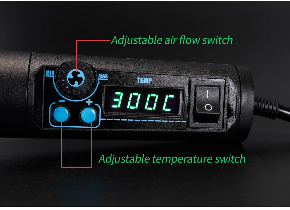 1. Использует программируемый пид технологии контроля температуры, применяя сложные ПИД программирование в машину для регулировки температуры. Температура стабильная и небольшие ошибки.2. Регулируемый поток воздуха, поток воздуха Большой и нежный, температура легко регулируется3. Система имеет функцию автоматического охлаждения прохладного воздуха, которая может продлить срок службы нагревательного элемента и защитить пистолет горячего воздуха4. Использование воздуходувки ветра, длительный срок службы и большой поток воздуха5. С новейшим подключаемым керамическим нагревательным элементом, легко заменяется6. Функция отображения температуры по Цельсию/Фаренгейту: для удовлетворения рыночного спроса в разных регионах компания разработала режим отображения температуры7. Двухсторонний внутренний SMT процесс производства может похвастаться чистым мастерством. Поток сигнала чист, и машина является стабильной и безопасной, что еще больше улучшает его производительность и адаптируемость к различным суровым условиям.8. Портативный дизайн, маленький размер, светильник вес, удобно носить с собой и прост в эксплуатации.