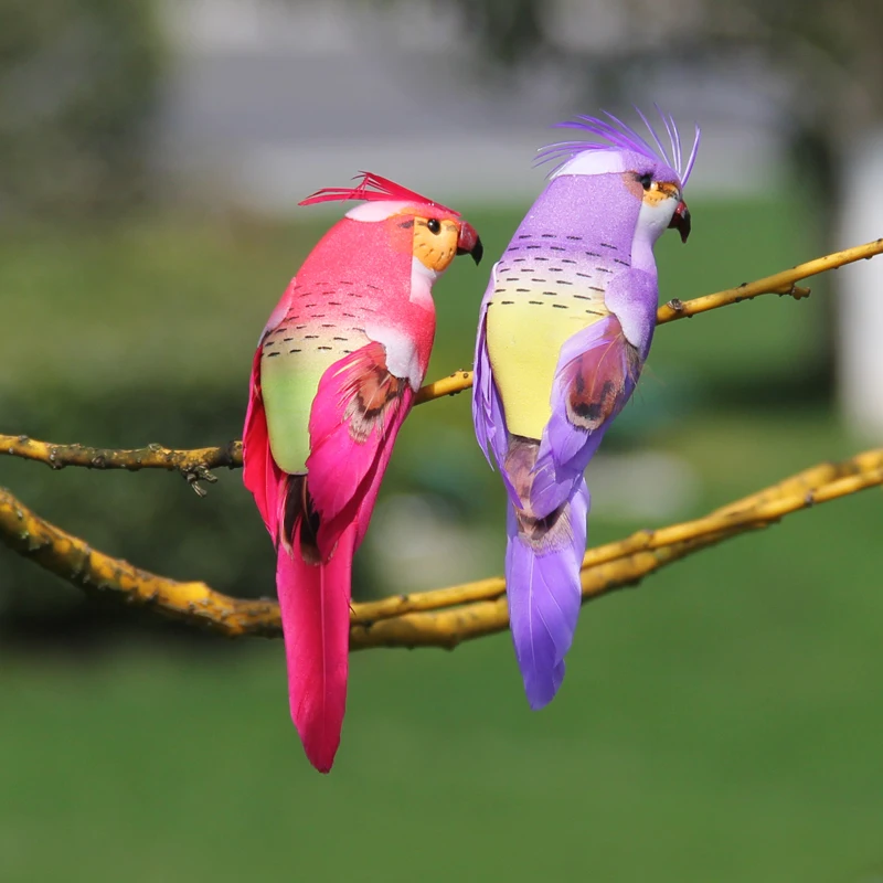 Мини-фигурка попугая из пенопласта, перо, птица, садовая газон, украшение, миниатюрное животное, искусственное ограждение, дерево, реквизит, украшения