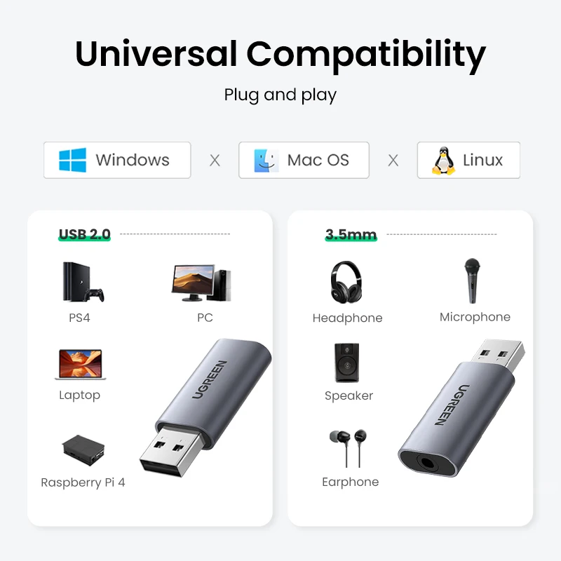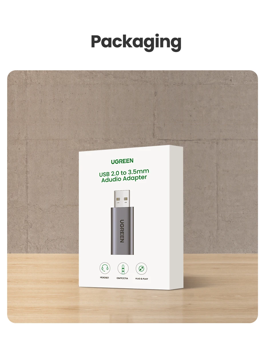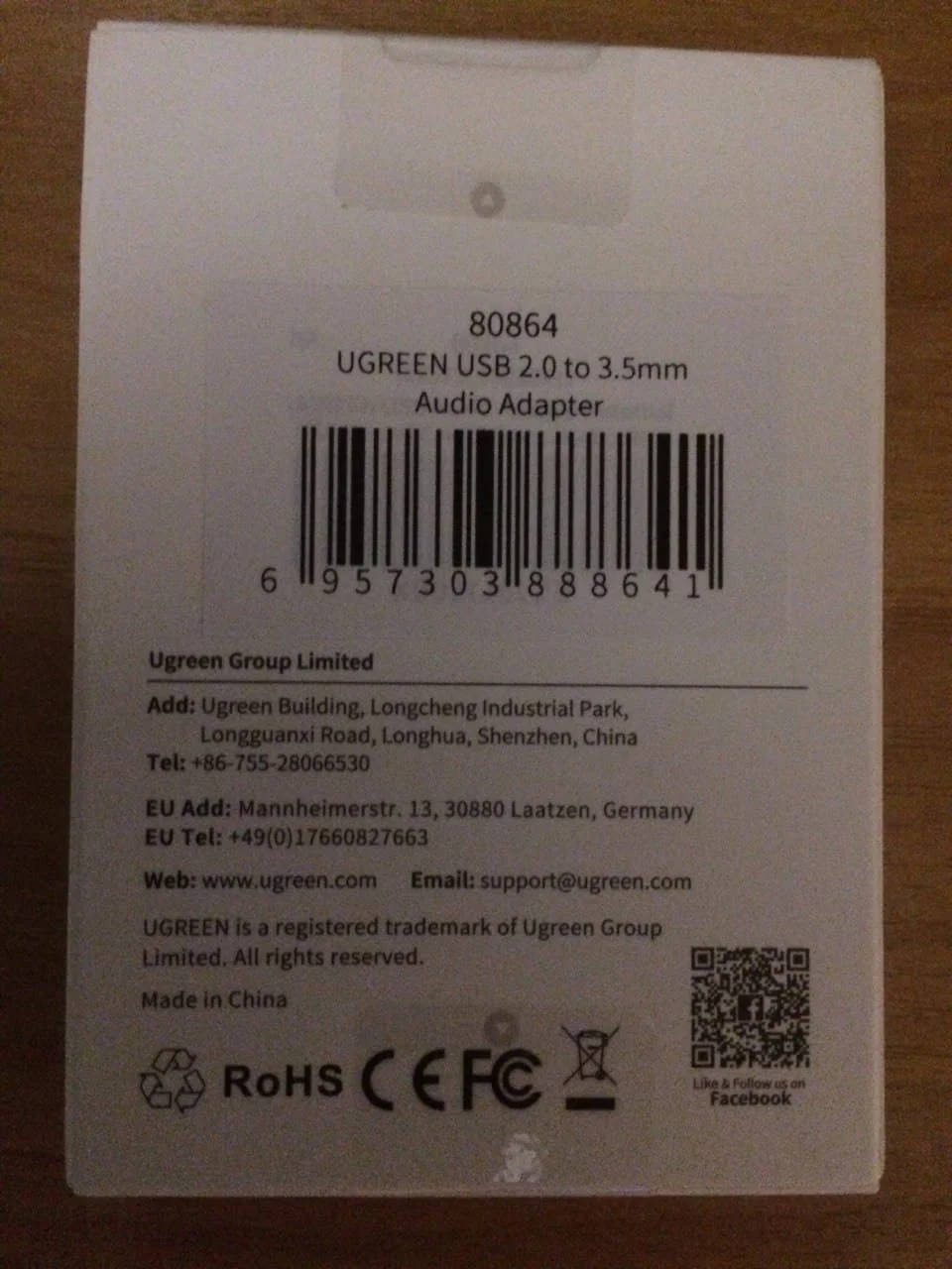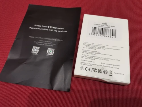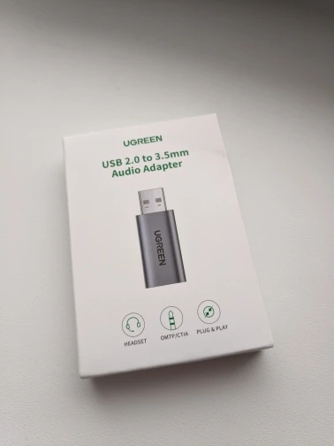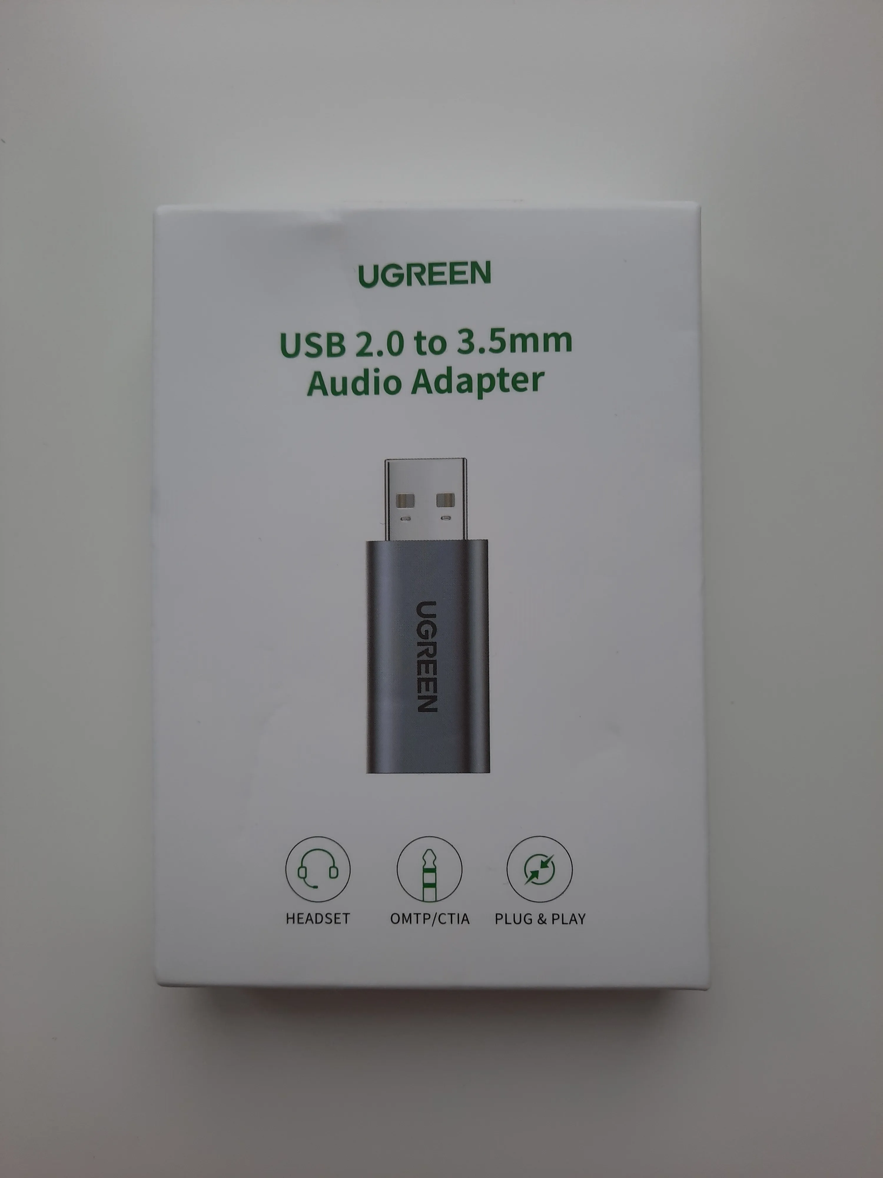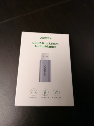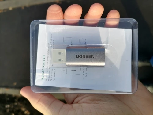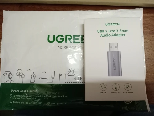 Продавец заказ отправил сразу после оплаты, доставка 2 недели. Брал по акции за 174 рубля !!!. Упаковка не пострадала, состояние идеальное. Качество изготовления на высоте. Если просто подключить к порту USB не определяется в системе. Определяется только при подключении с подключенными наушниками или акустикой, так что не спешите думать, что не работает. Звук весьма достойный, ни чем не отличается от встроенных звуковых схем материнских плат. Подключаете свои наушники или акустику к устройству и в порт USB, звук сразу идёт через USB карту. UGREEN как всегда на высоте !!! Рекомендую продавца и его товар !!!