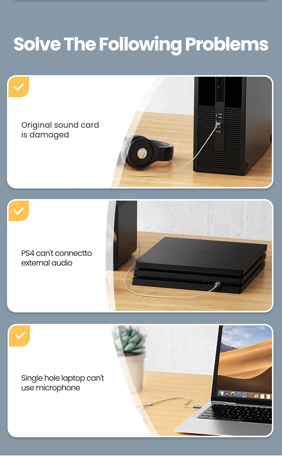 Продукция UGREEN всегда имеет солидное качество сборки. Я купил это для использования с обычными наушниками только для аудио, но пропустили изображение в описании, что Примечания это совместимо только с наушниками TRRS, а не с TS/TRS. Пока я могу слышать звук при подключении, я не могу контролировать громкость. Это моя вина, что не читаю страницу товара внимательно, а не UGREEN's. Хотя, возможно, они могут сделать его более четким, например, не используя наушники Beats на картинке «Универсальная совместимость». Также не знаю, что означает «2 в 1». Прибыло в течение 21 дня.