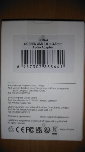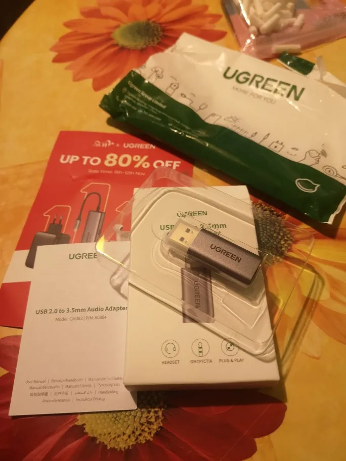 Продавец супер. Отправил быстро. Доставил курьер прямо домой до двери. Фирменный пакетик ugreen. Звуковая работает отлично. Беру не первый раз.