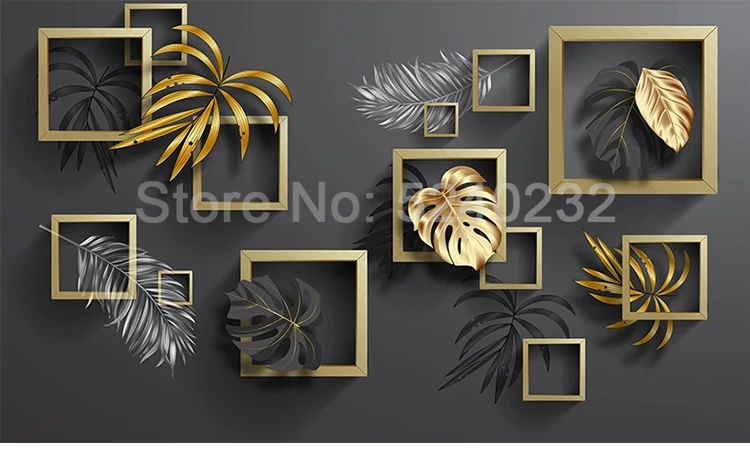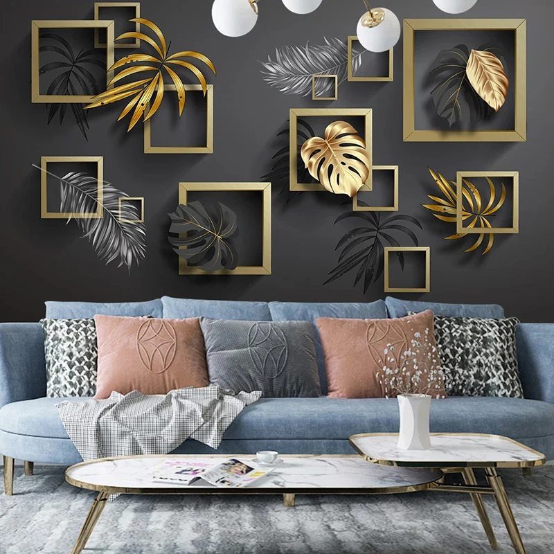 Пользовательская роспись роскошное Искусство Настенная живопись 3D стерео золотые геометрические листья гостиная диван ТВ фон стены домашний декор обои