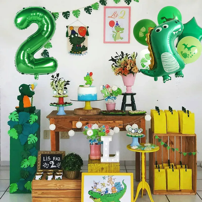 7 шт.лот зеленый динозавр, фольгированные цифры-шары, украшение для...