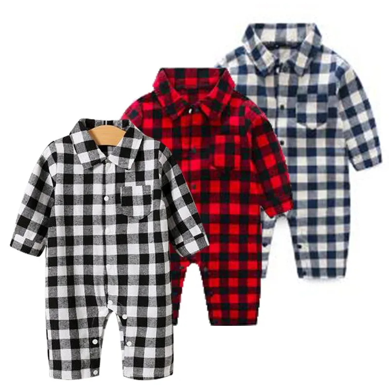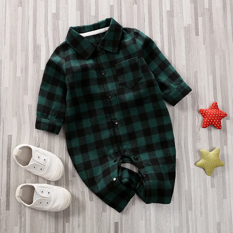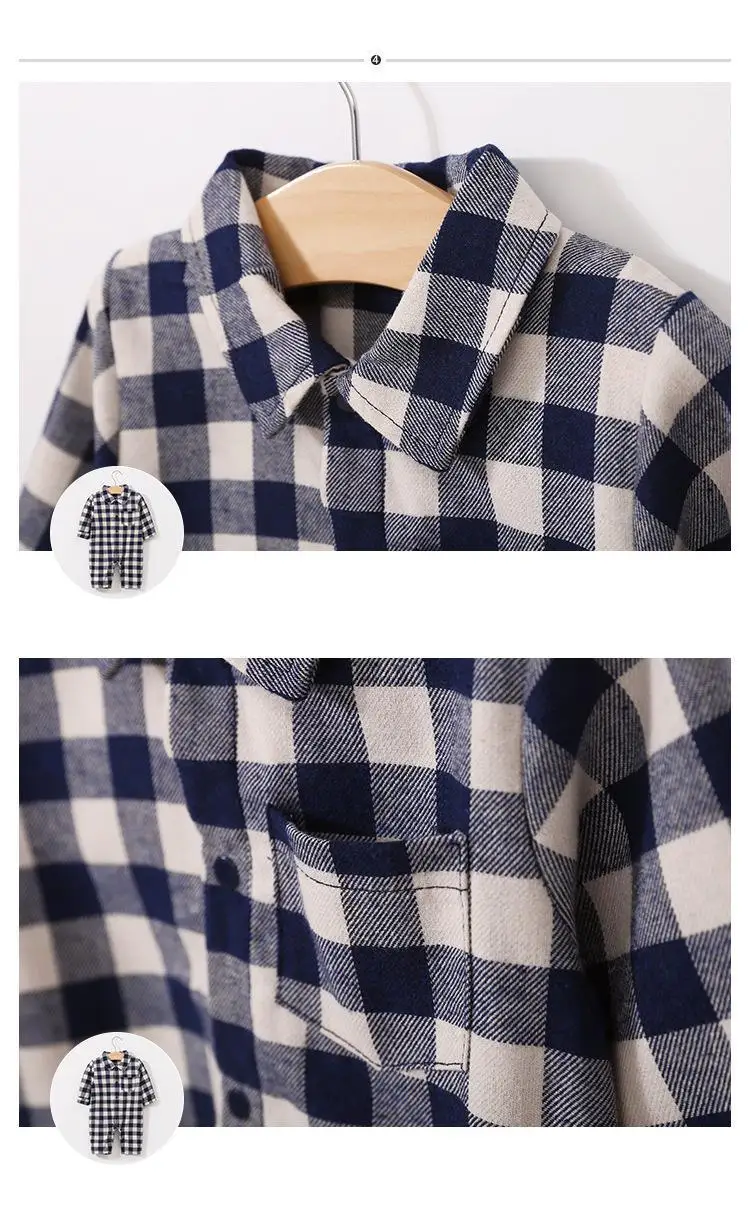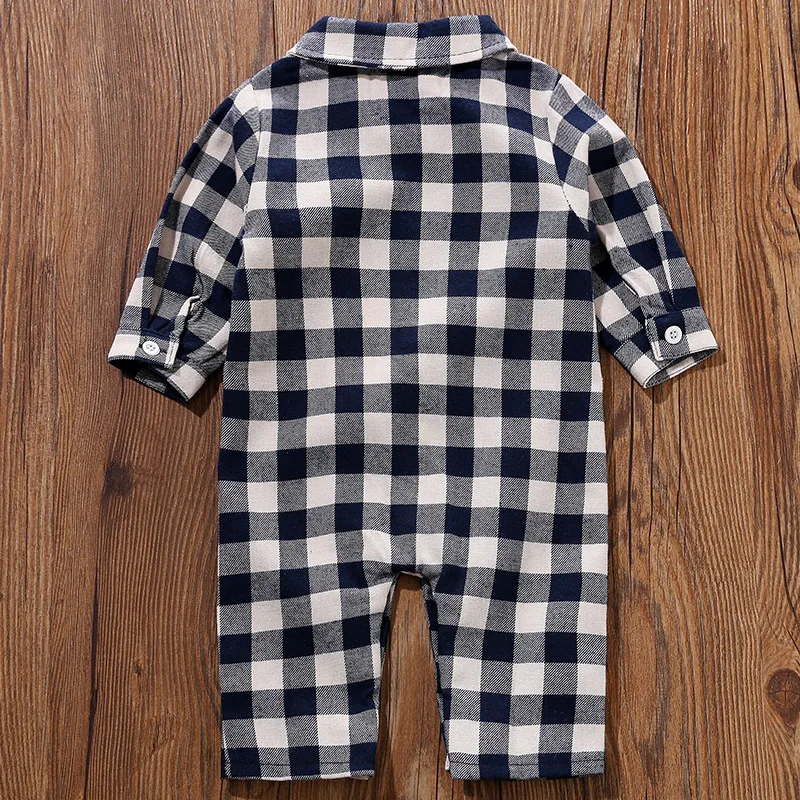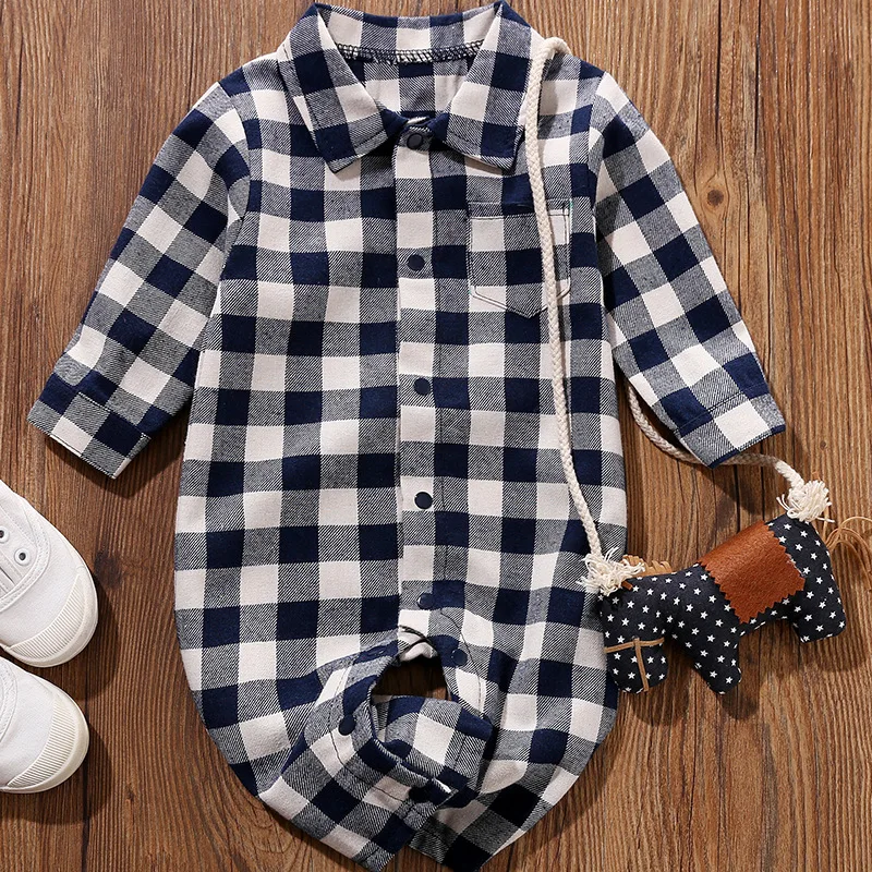 Комбинезон для мальчиков, хлопковый клетчатый комбинезон с отложным воротником и длинными рукавами, верхняя одежда для малышей, весна 2021