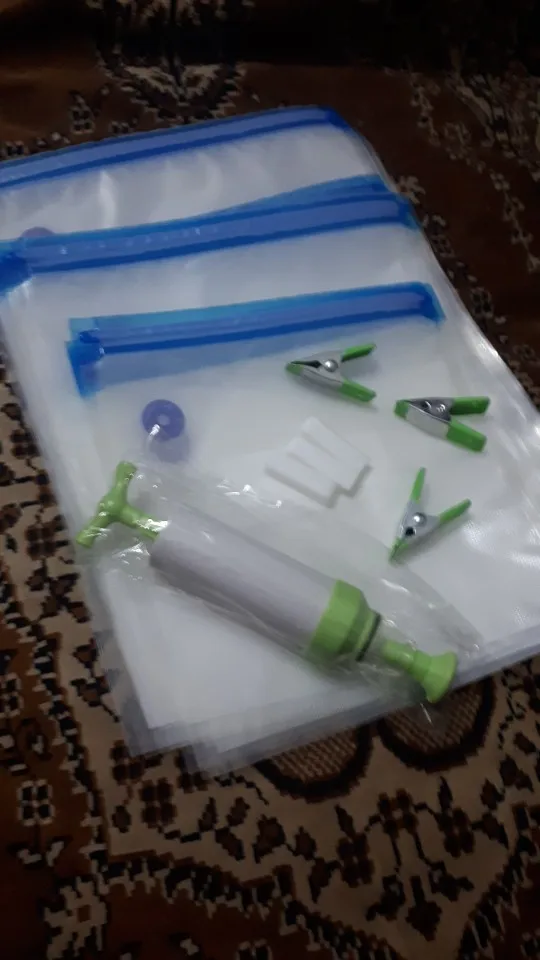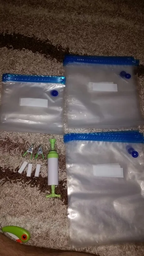 Посылка пришла без насоса для откачки воздуха. Пришли только пакеты 20шт. Проверить их качество, естественно, возможности нет. Ко всему прочему хочу добавить, что спец замки для закрывания пакетов всего в количестве 3 штук