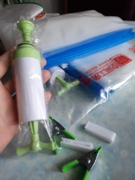 быстрая доставка курьером в СПб. сразу заказала 2 комплекта. Всё работает, надо приноровиться-белыми зажимами сильно придавить при закрывании пакета и насос начинает работать когда в пакете что-то объемное. спасибо продавцу