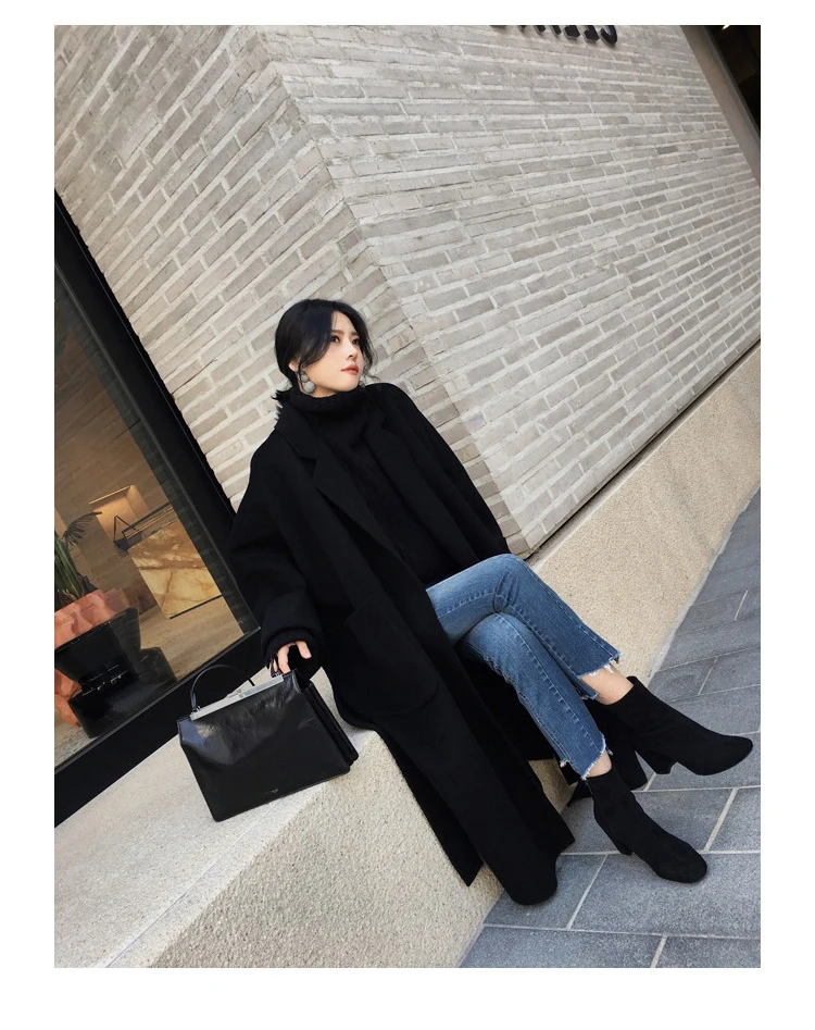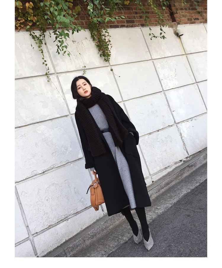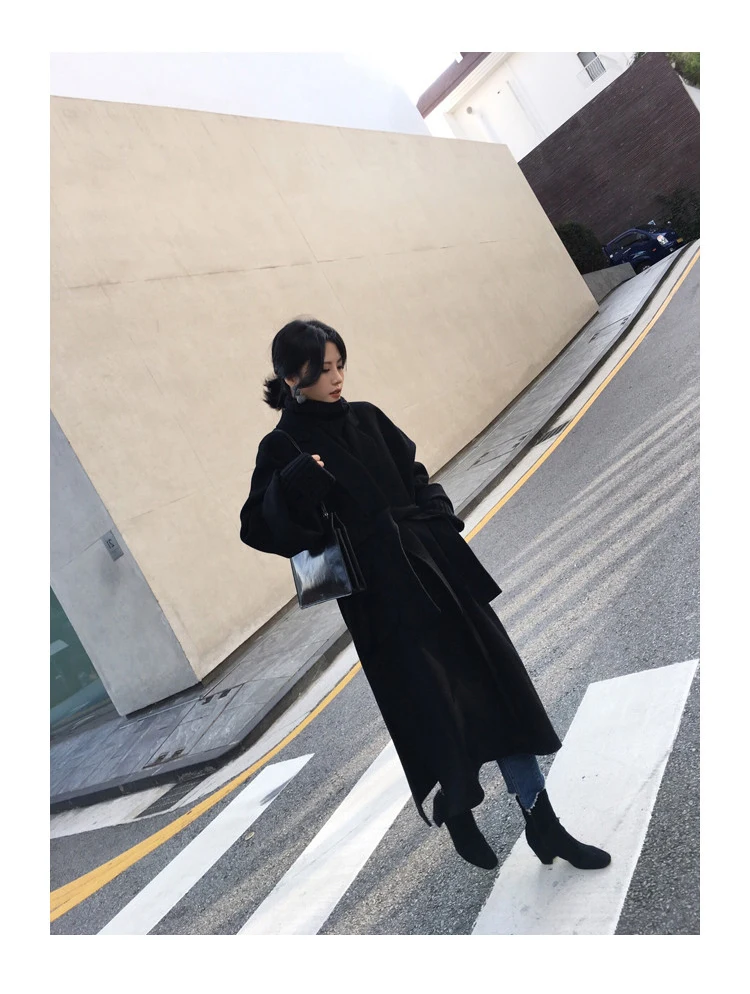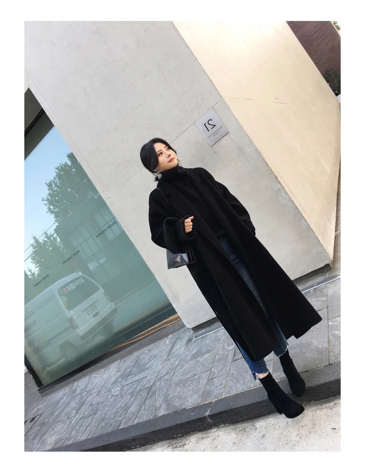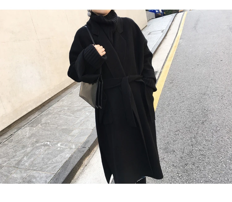 Зимнее элегантное женское Шерстяное Пальто в Корейском стиле, модное Черное длинное пальто, винтажное шерстяное пальто, Повседневная кашемировая верхняя одежда