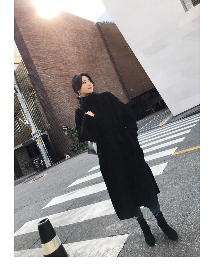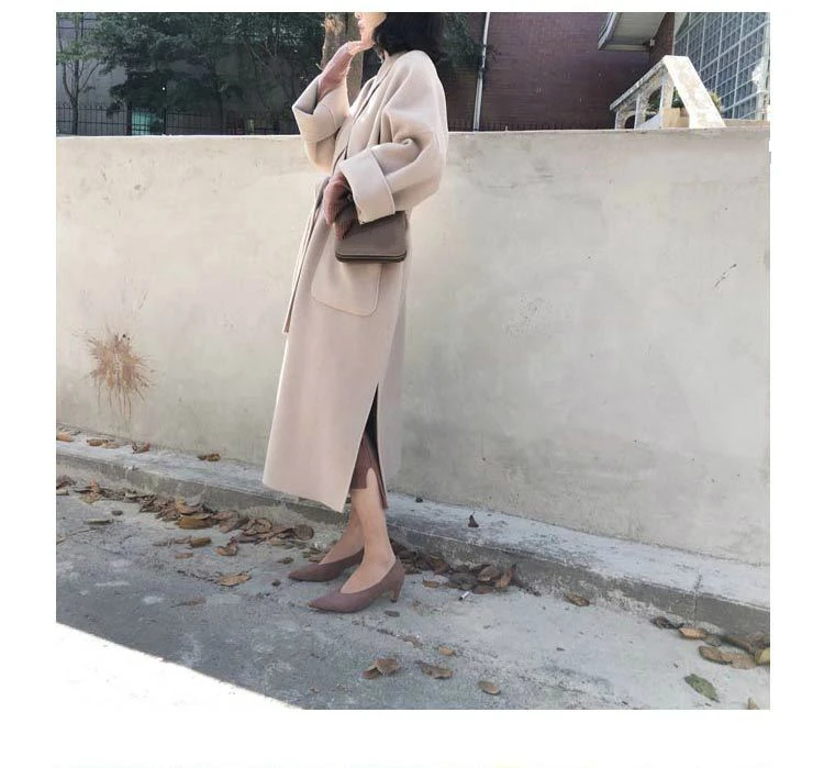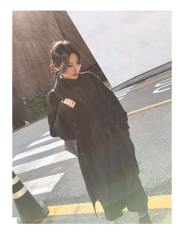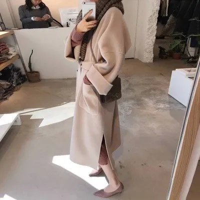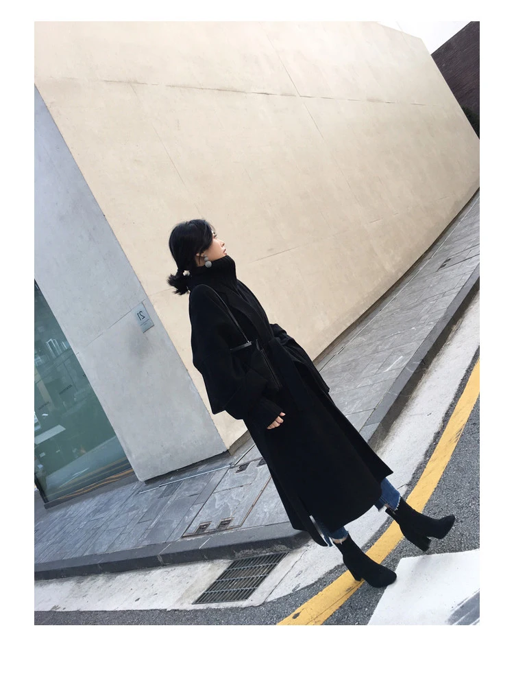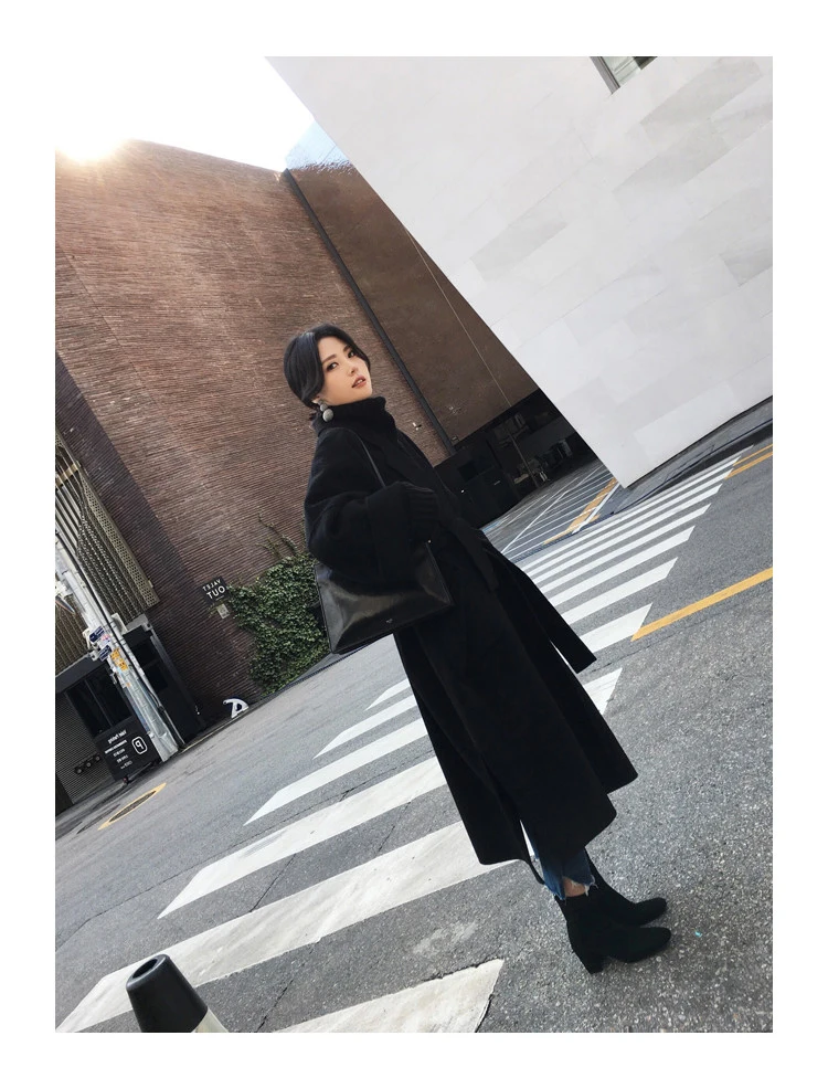 Зимнее элегантное женское Шерстяное Пальто в Корейском стиле, модное Черное длинное пальто, винтажное шерстяное пальто, Повседневная кашемировая верхняя одежда