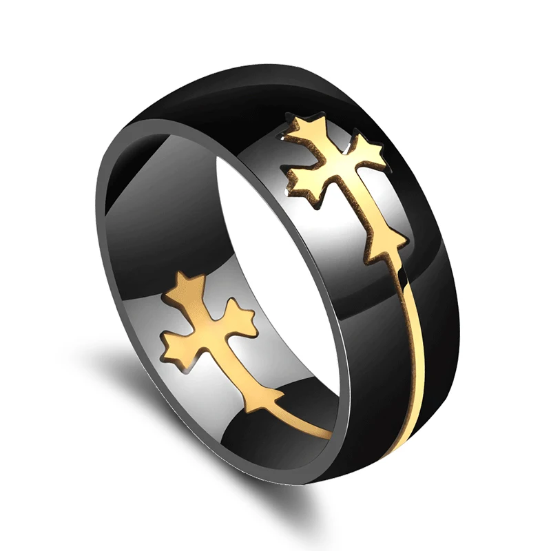 Женское и мужское кольцо с крестом Ramos, золотистого и серебряного цвета, черное кольцо из нержавеющей стали, мужское повседневное ювелирное изделие, обручальное разделяемое кольцо