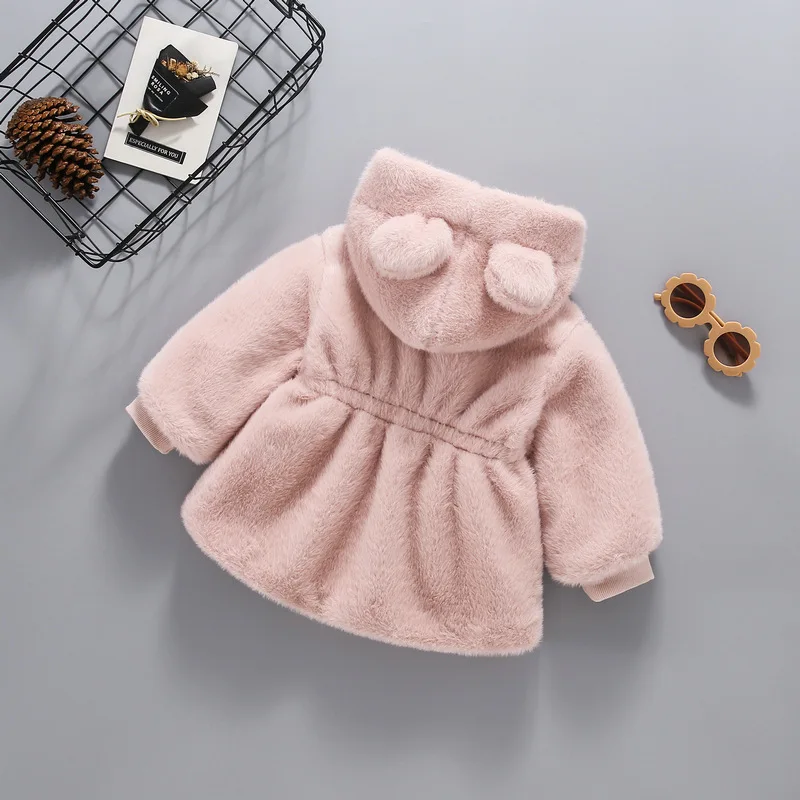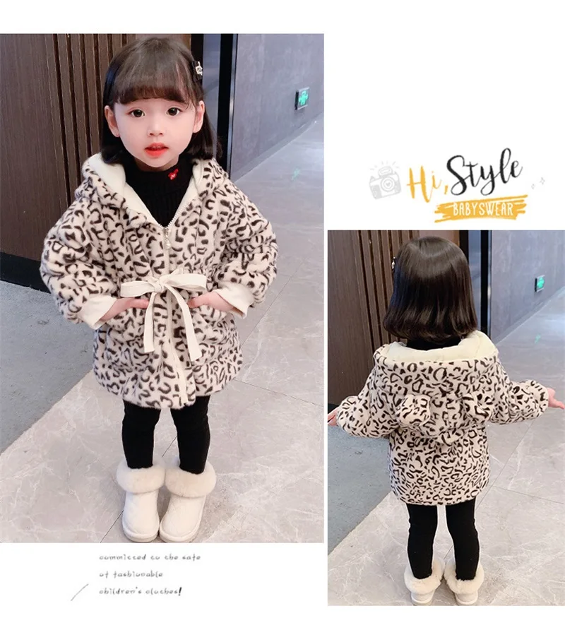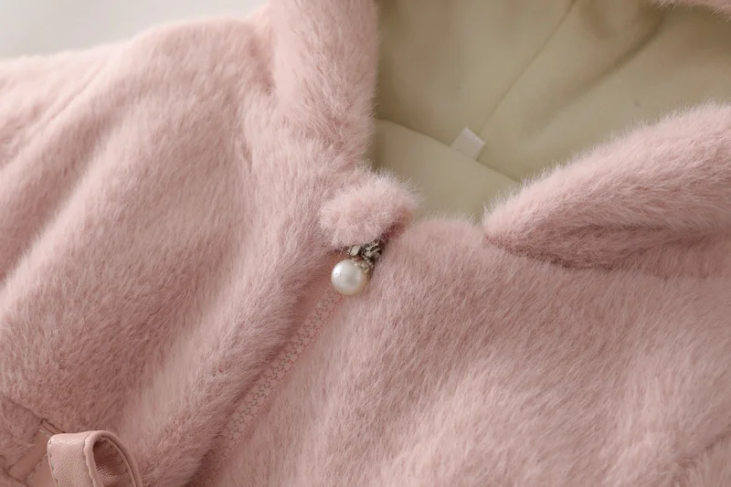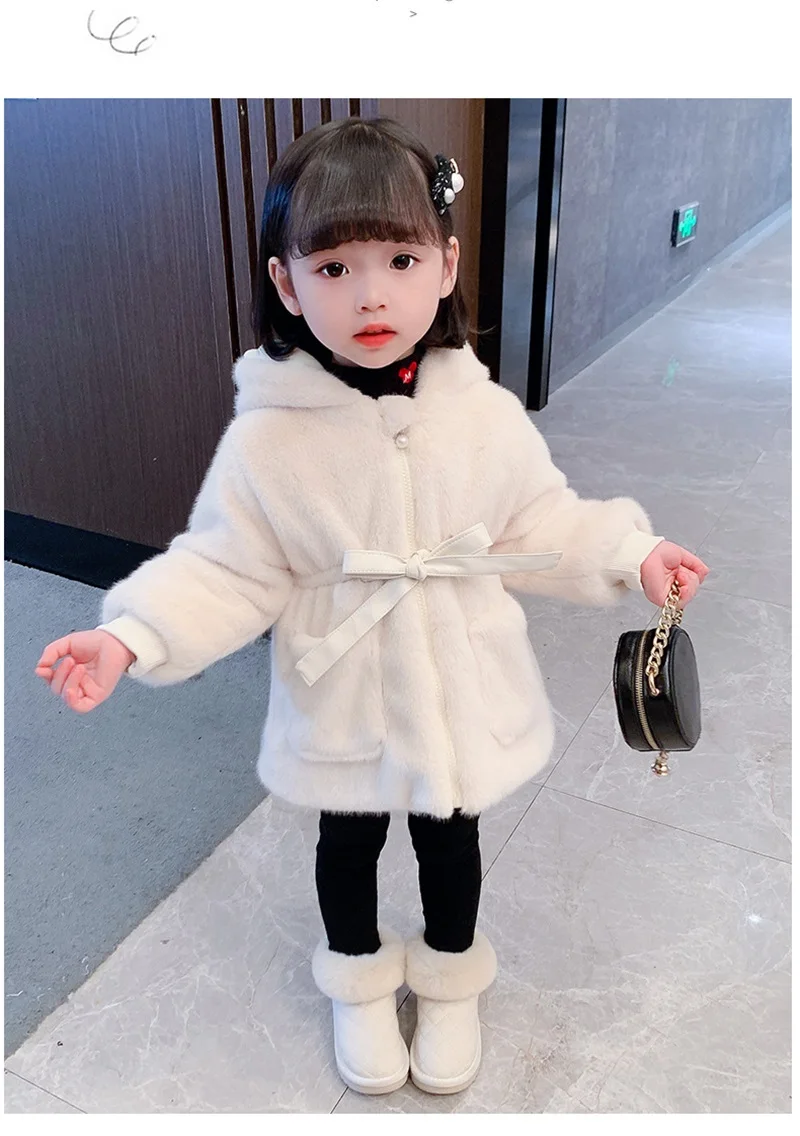 Зимнее меховое пальто для маленьких девочек, плюшевая утепленная одежда, детская норковая куртка с капюшоном, детский модный теплый рождественский костюм на молнии