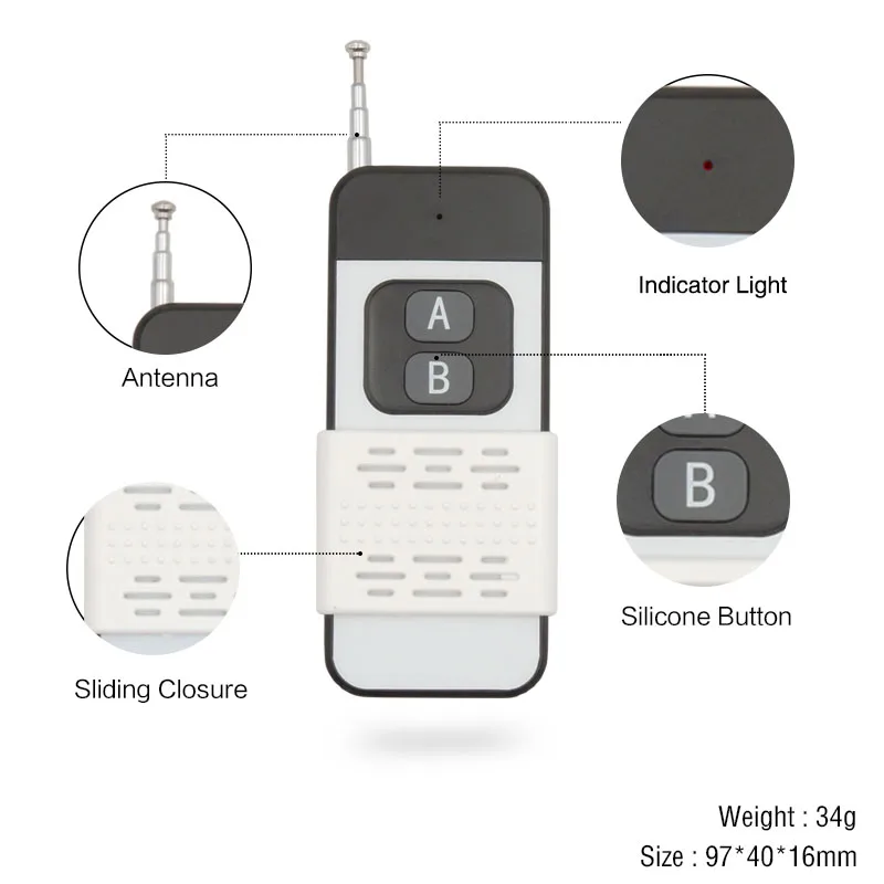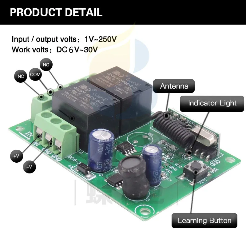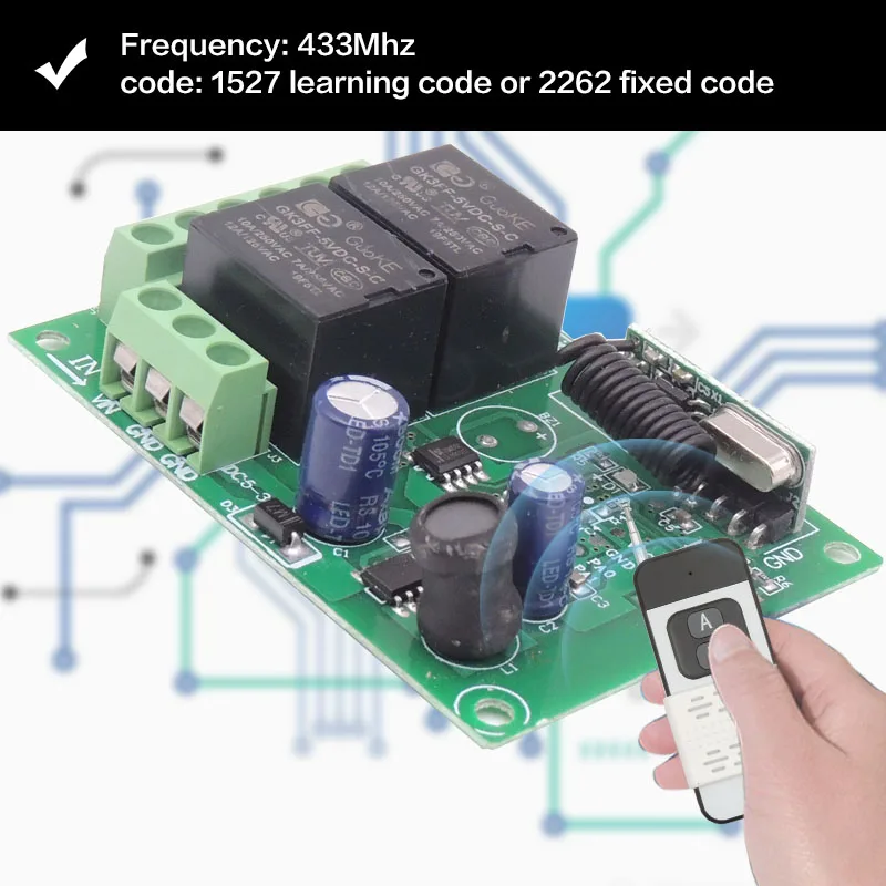 Универсальный беспроводной пульт дистанционного управления, 433 МГц, 12 В, 24 В постоянного тока, 10 А, 2 канала, релейный приемник и передатчик, сделай сам, мотор, беспроводной контроллер