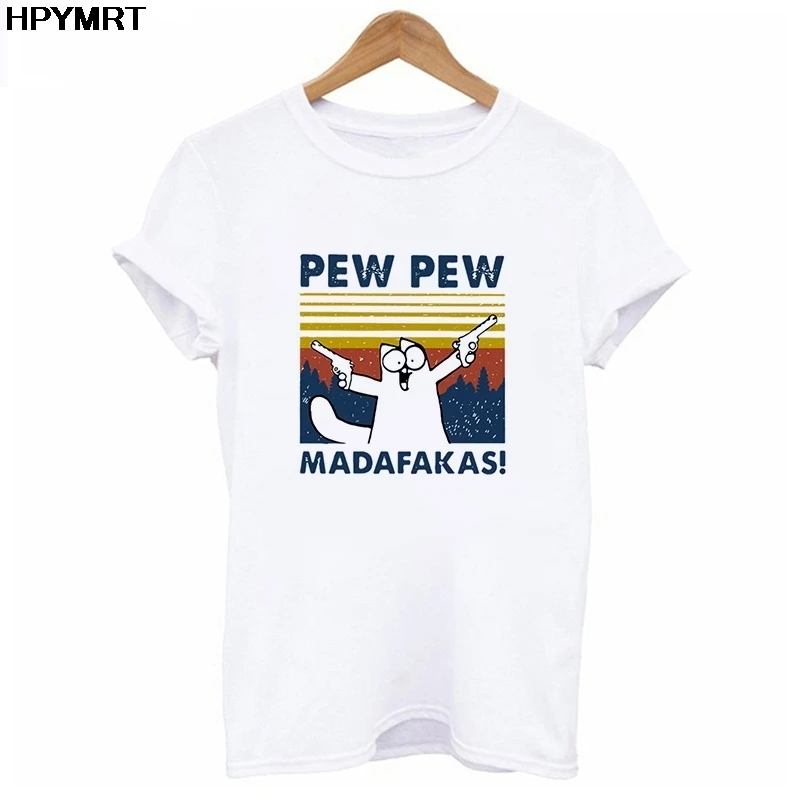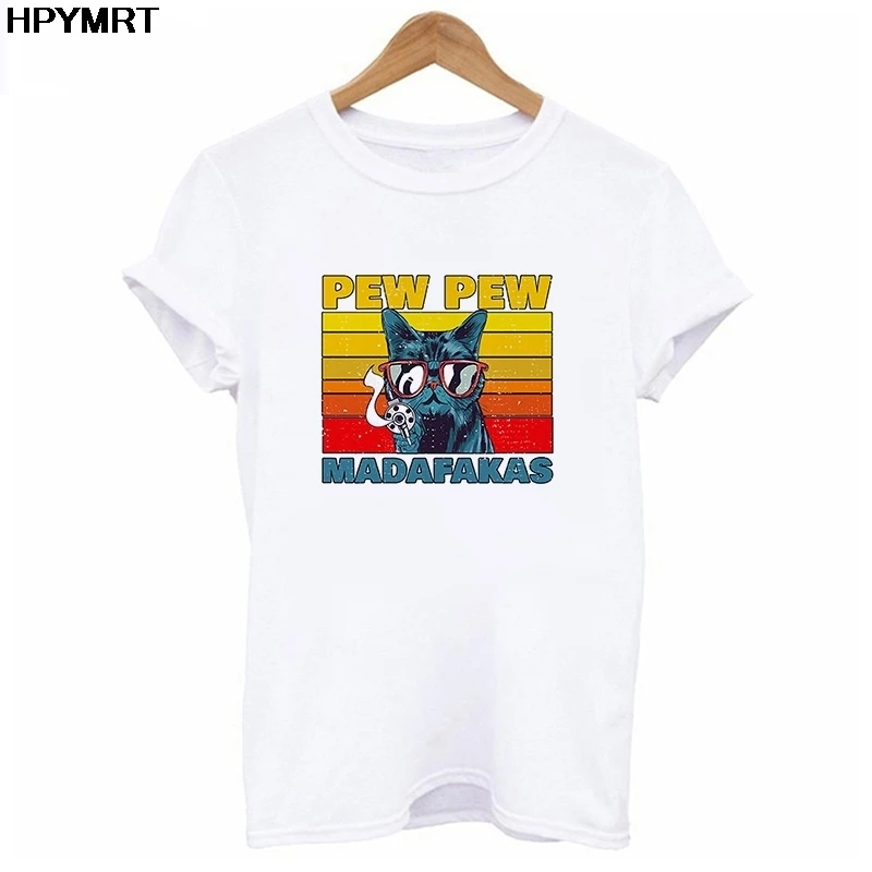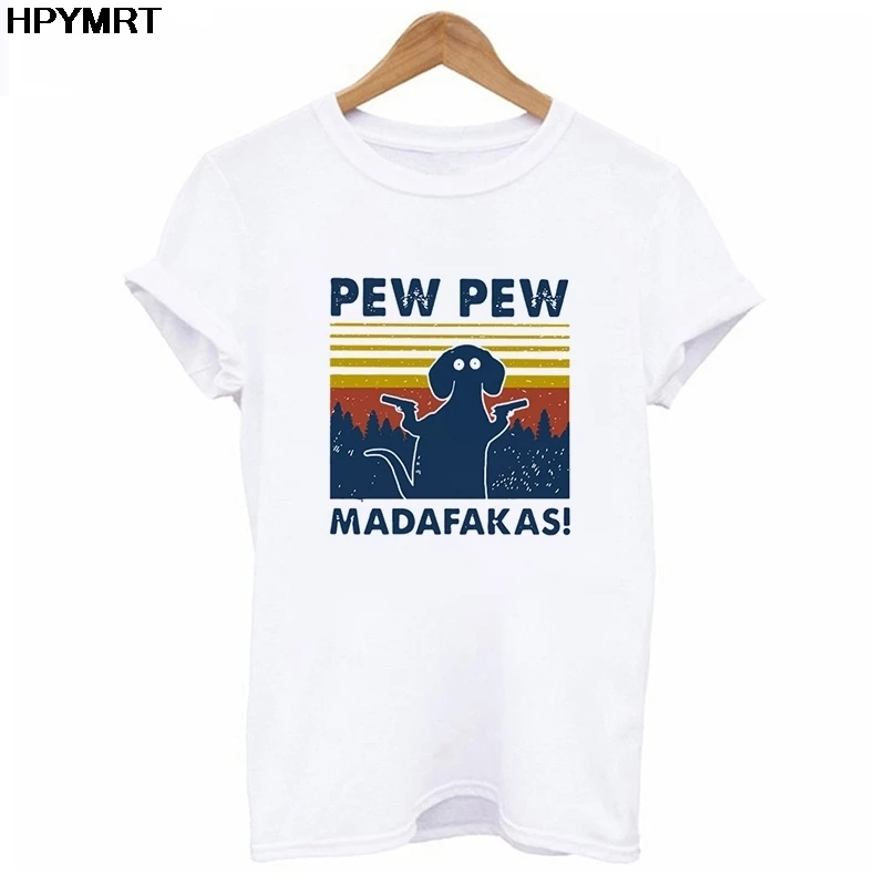 Женские футболки с принтом Pew Madafakas, летние футболки с графиче...