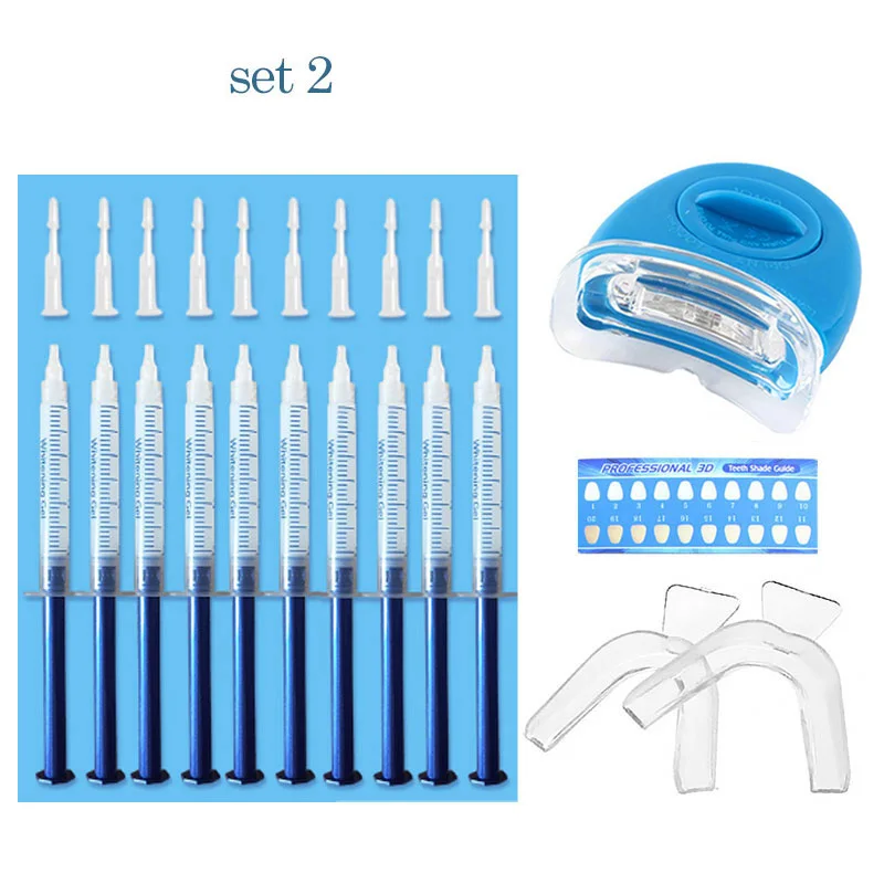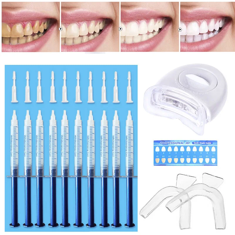 10 шт. 6 шт. 3 шт. X отбеливающий гель (3 мл) 2 х новейшие дизайнерские термоформные одиночные арочные лотки 1 х мини холодный светильник, отбеливающая лампа 1 X Профессиональная 3D насадка для зубов
