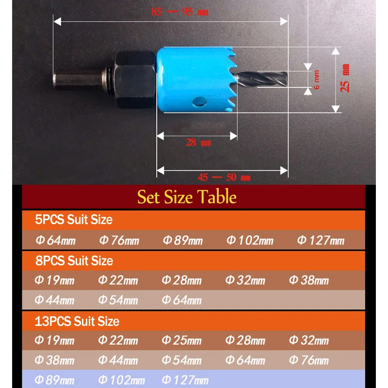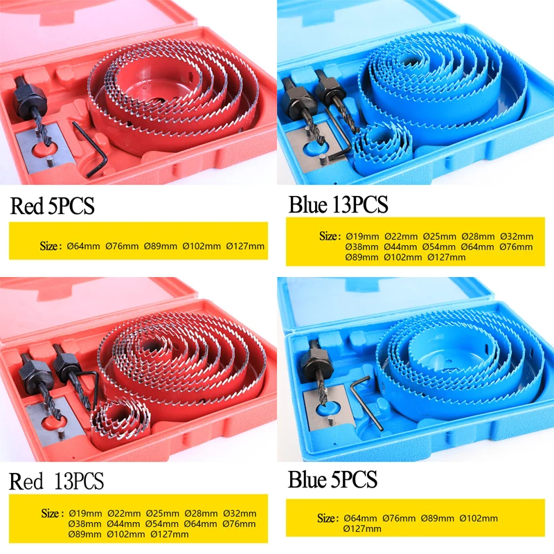 19-127 мм Кольцевая пила для резьбы по дереву, металлическое сверление, электроинструмент, сердечник, сверла, наконечники, DIY, деревообрабатывающий режущий набор, синий