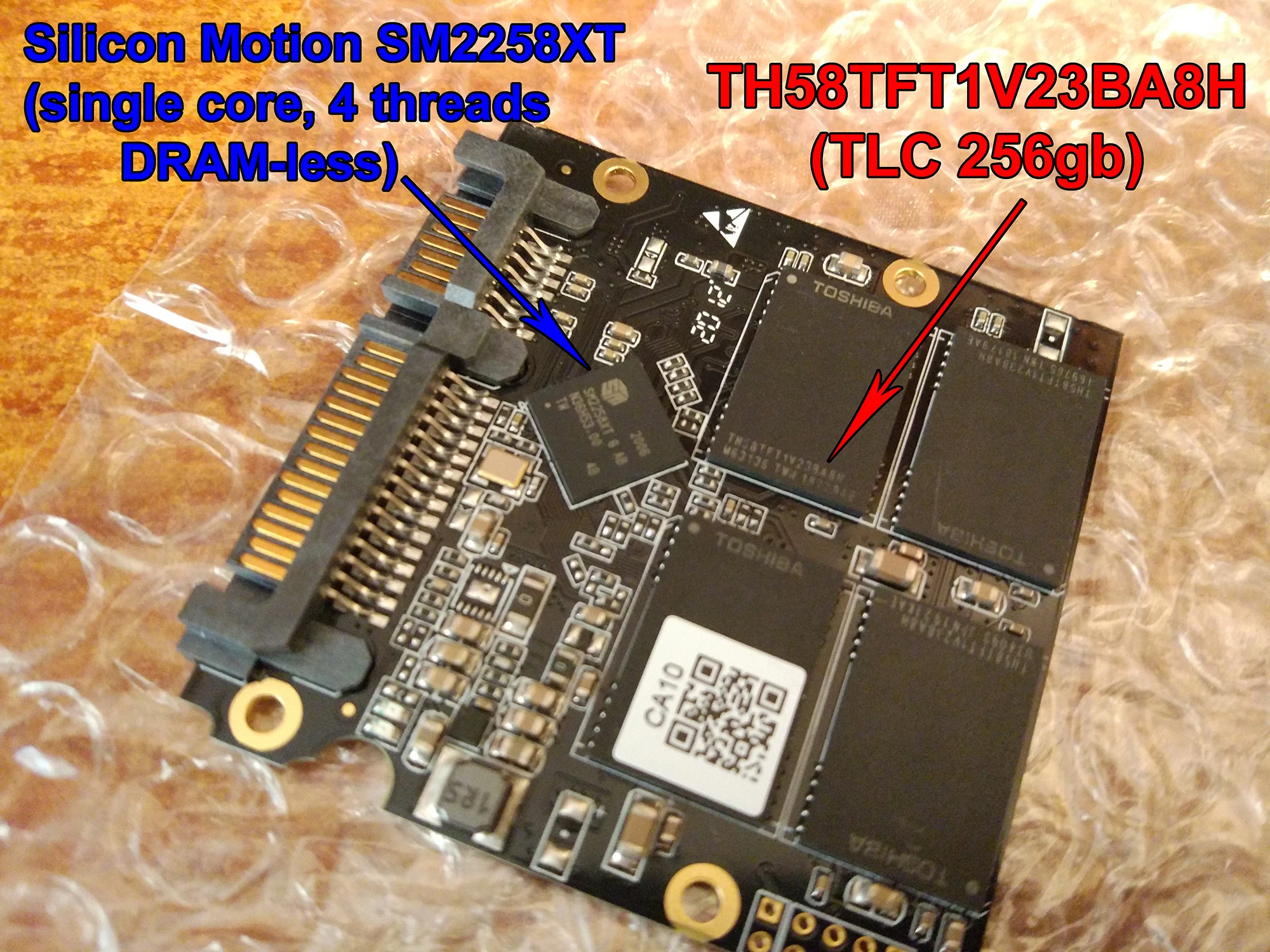 Взял его на 11.11 со всеми кодами и купонами вышел в 4950 вечно деревянных. Упаковки нет никакой, в пути знатно так помялся, если на подарок то товарный вид упаковка уже иметь не будет, но сам ссд живой. Начинка брендовая, пайка хорошя. Как и ожидалость самый нищебродский контроллер 2258хт без кэша, банки памяти tlc (не 3д) от toshiba по 256гб 4 штуки, что есть гуд, могли и 2 по 512 засунуть. Датчик температуры програмно залочен на 40 градусов, характерная черта дешманских ноунейм дисков. В диспетчере устройст винда видит его как jmicron (возможно это приколы внешнего бокса). Замер скорости выкладывать не буду ибо и использую его в паре с внешним боксом через юсб 2.0. В общем за 5к покупка достойная.