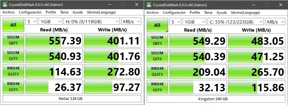 as described. В порівнянні з Netac N600, який в мене вже рік, в цьому на 20 GB більший об'єм. Швидкість +- те саме. Ніби все норм