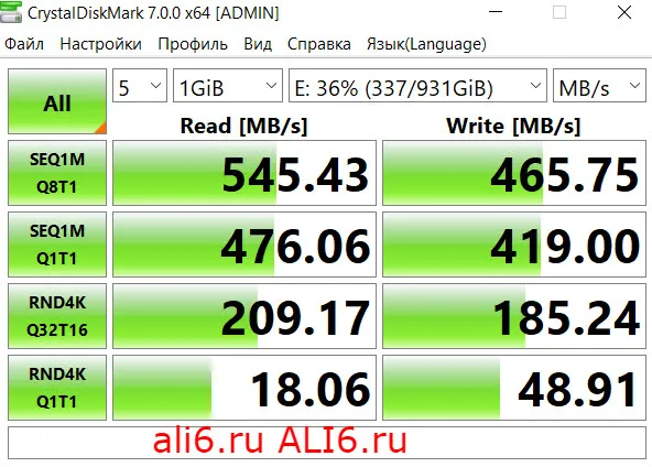 Брал SSD на 1 Тб на распродаже чп с купонами за $65 (4900р), еще часть вернул через кб ali6.ru Установил в ноут Huawei Matebook D15 для хранения данных (при первом подключении требует инициализации). Скорость записи 545 мбс, чтения 465 (см. фото). Тип памяти TLC. Внутренности не смотрел, об этом есть в других отзывах. Покупкой доволен. Продавец долго отправлял, 10 дней, но доехал за 2 недели, итого с момента оплаты 24 дня до Москвы. Как экономить: ali-cb.ru и alicb.ru Регистрация ali6.ru или сканируйте QR код. Скидки 50-90% здесь big2.ru Видеоканал aavd.ru Группа ВК vk.com\ali_cb