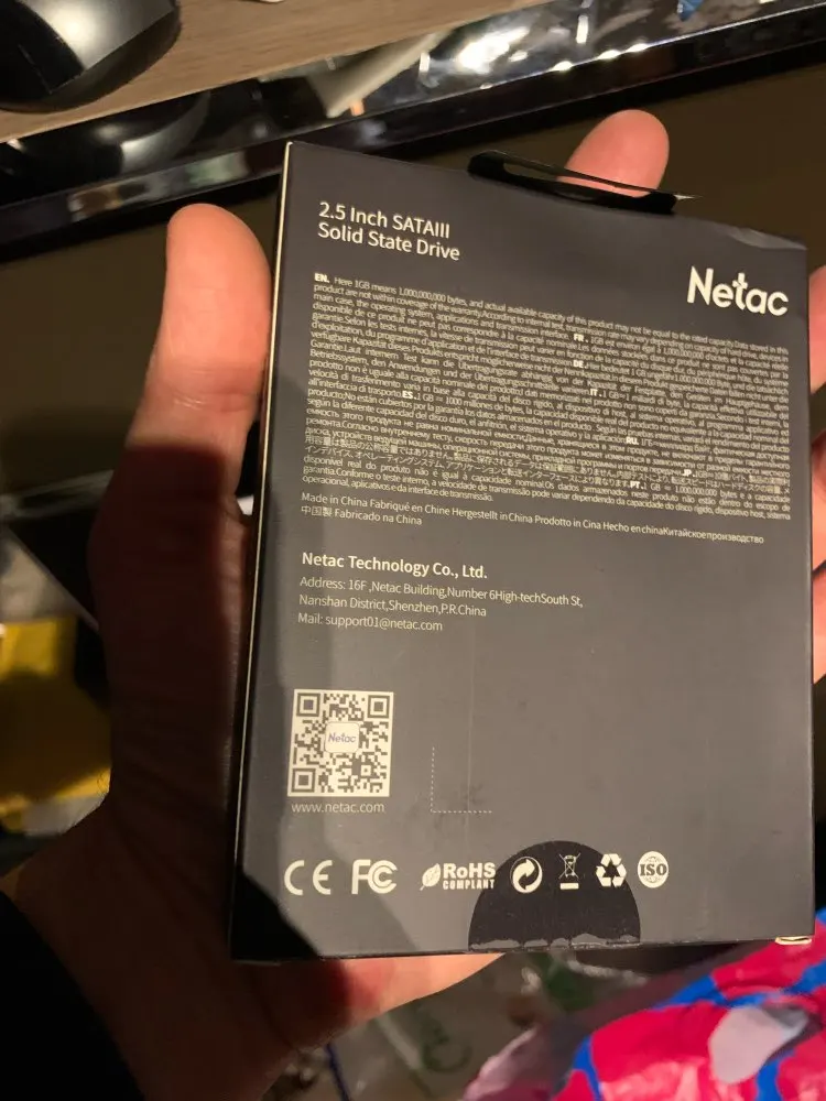 Отправка была с задержкой но продавец отправил как можно быстрее.SSD отличный корпус алюминиевый.Пришел в фирменной упаковке. На sata3 не проверял но на sata2 выдаёт полную скорость.